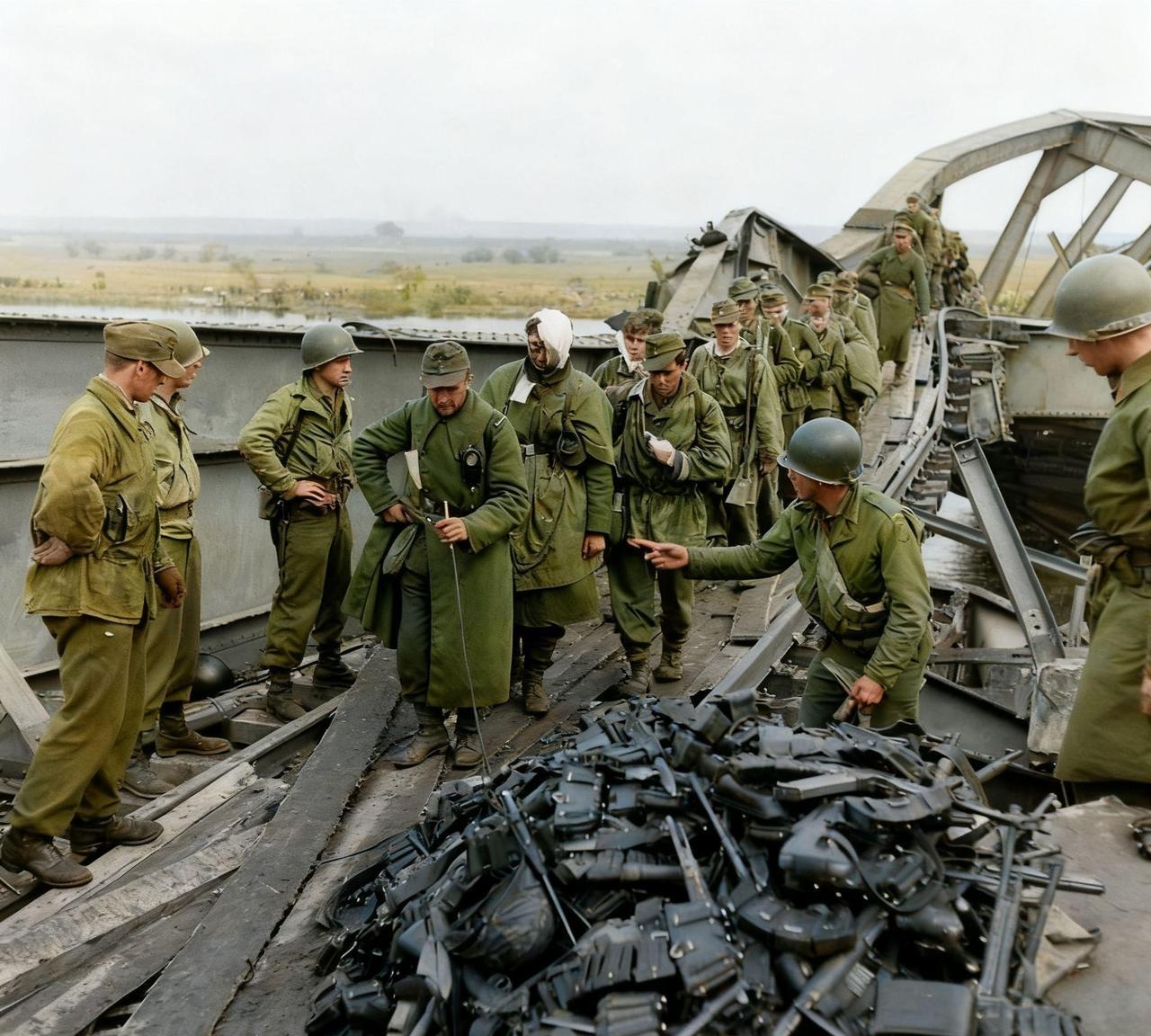 投降后不用缴械吗? 1945年4月底至5月初,因害怕投降后遭到苏联红军报复,在柏林战役期间东线作战的德军第12集团军,在温克将军的指挥下拼死突破苏军包围,甚至连轻重伤员都不放弃,一路跋山涉水、历经千辛万苦渡过易北河,向美军投降,被缴械的武器堆积如山,被美军大捞一把。令人费解的是,图三一名投降的德军士兵仍然持有一支MP40冲锋枪,这样也行?#牢记历史爱我中华# #分享真实的历史#