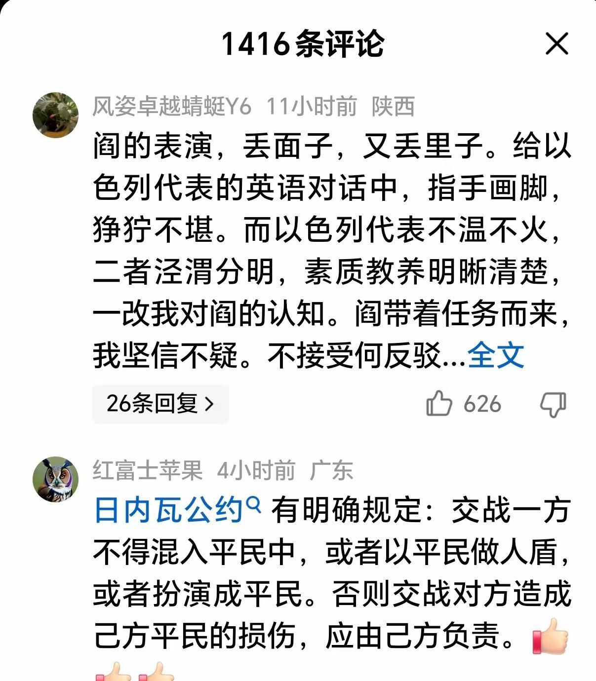 实在不明白,究竟为什么? 阎学通教授在刚刚结束的香山论坛上,慷慨激词,对与会的一位以色列军官提出质问,“为什么以色列在加沙滥杀无辜,导致数万手无寸铁平民的死亡。”却遭到了无数网民的质疑和围怼。 有人说哈马斯有错在先,如果不首先惹毛了以色列,绝不会是这个下场。 这个世界究竟怎么啦,连一些西方国家也对以色列表示严厉谴责,难道发出正义之声就是这么难吗?