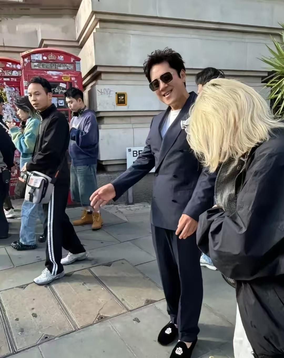 看57岁的蔡国庆在英国伦敦大秀身材,看着不亚于专业模特胡兵啊!不服不行!他咋就不老呢,还像小伙子似的,精神状态极佳。 看视频中他穿着一身浅灰色西服套装,戴着墨镜,发型也很酷,简直帅呆了。发现他如今多方面发展了,唱歌时少了,参加综艺,当评委…哪样都行,年龄越大越活跃了。看他和身边人互动,脚穿那双鞋很抢镜。