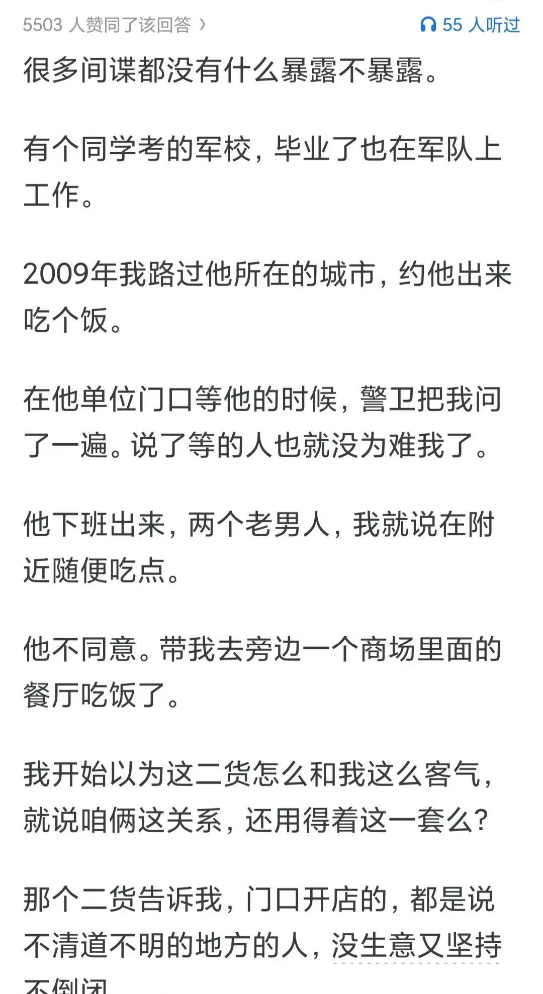 间谍一般是怎么暴露的? 很早以前听说过一个,蹲守门口装卖粮食的,找每周采购的大厨