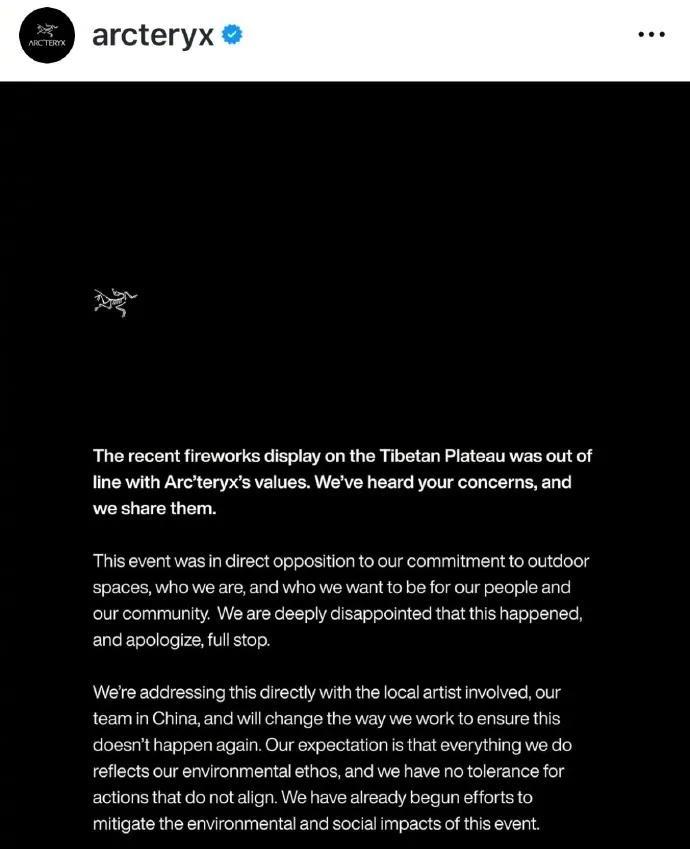 难以想象,一个对环境污染“零容忍”的品牌,居然在高原燃起了烟花...... 近日,户外品牌始祖鸟与艺术家蔡国强在西藏喜马拉雅山脉江孜地区合作实施的烟花艺术项目《升龙》引发广泛争议。该活动在海拔约5500米的高原生态脆弱区进行,尽管主办方声称使用可降解材料并制定生态保护方案,但仍被专家和公众质疑可能对高原土壤、植被及生物多样性造成不可逆破坏。人民日报、新华社等官方媒体相继发文批评,指出“放错了地的烟花秀,再美也是破坏”,强调青藏高原生态保护的极端重要性。青藏高原是我国重要的生态安全屏障、战略资源储备基地,保护好西藏生态环境,利在千秋、泽被天下。 其实,现在的无人机秀普及地非常全面。和烟花相比,无人机更加安全和环保。如果在高原上搞一场大型无人机秀,可能不至于引起如此强烈的抵制,当然这可能在技术和成本上要求更高。 事件发生后,蔡国强工作室及始祖鸟均公开致歉,承诺配合第三方评估并采取生态补救措施。但始祖鸟海外声明中“与中国团队沟通调整”的表述,被部分舆论批评为“甩锅”和不真诚。此次事件不仅暴露了商业艺术项目在生态评估与执行中的盲点,也对品牌以环保为内核的公共形象造成显著损害,反映出部分企业在新兴市场扩张中价值观与实践的错位。 能够把分散在全球各地不同品牌不同客户群体整合在一起,本是一种强大的实力。可能安踏对子品牌的整合,并没有看起来的那么完美。 一家品牌公司的行动如何与品牌内核背道而驰?始祖鸟和蔡国强的合作,是一个可以写入教科书的营销失败的案例,贡献了一个血淋淋的教训。 不过,只要态度诚恳,后续为恢复生态持续投入资金,甚至投资成立一个基金会,完全可以把一个负面案例经营成正面案例。 烟花散去不能仅留下道歉!总之,遵守法律法规是底线,而对生态环境和自然的敬畏是高线。在世界屋脊,保护生态环境的红线理应比底线站得更高。守护好这里的生灵草木、万水千山,才是捍卫这片净土的更高准则。#珠穆朗玛峰烟花#