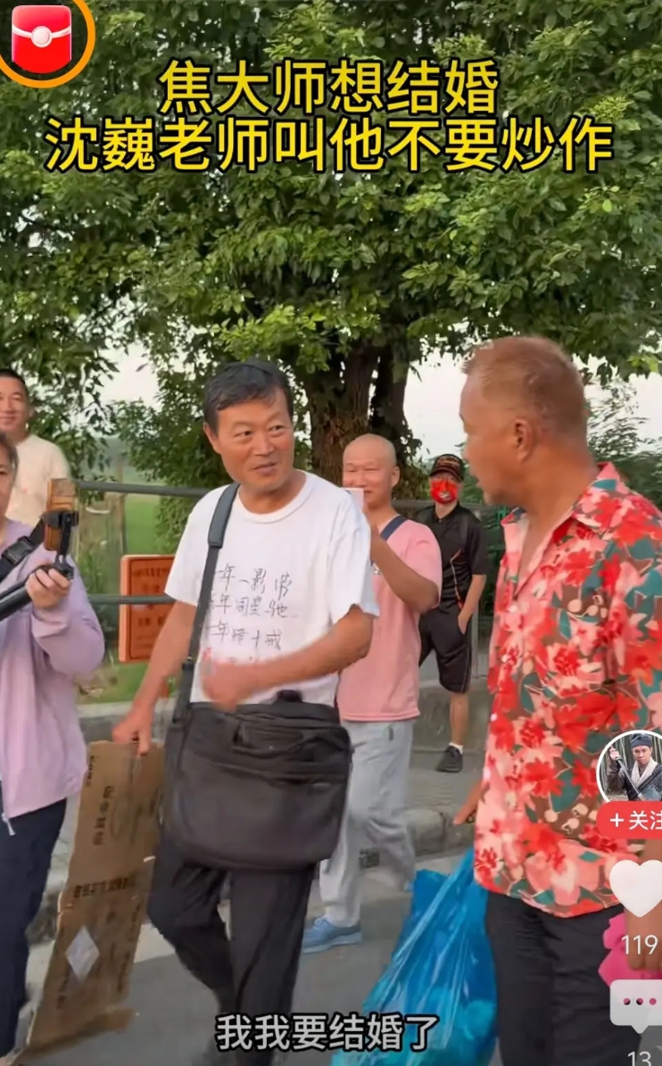 焦大师缠着沈巍推销零彩礼,沈巍叫焦大师别重复炒作。 焦大师成了沈巍心目中的头号缠访户,这不,焦大师举着牌子又来找沈巍了。今天,焦大师的主题是零彩礼,他提倡全社会要实现零彩礼,沈巍问他,你有儿子女儿吗。焦大师说,我自己要结婚了,我不想让女的找我要彩礼。沈巍冷冷地嘲讽,你别想那些远的不切实际的事情。沈巍脚步向前,焦大师继续纠缠左右,反复推销零彩礼,沈巍忍无可忍停住脚步,来了一句:重复这些东西就是有炒作之嫌。 大家觉得,焦大师如何才能被沈巍认可呢? (图片来源网络,侵删)