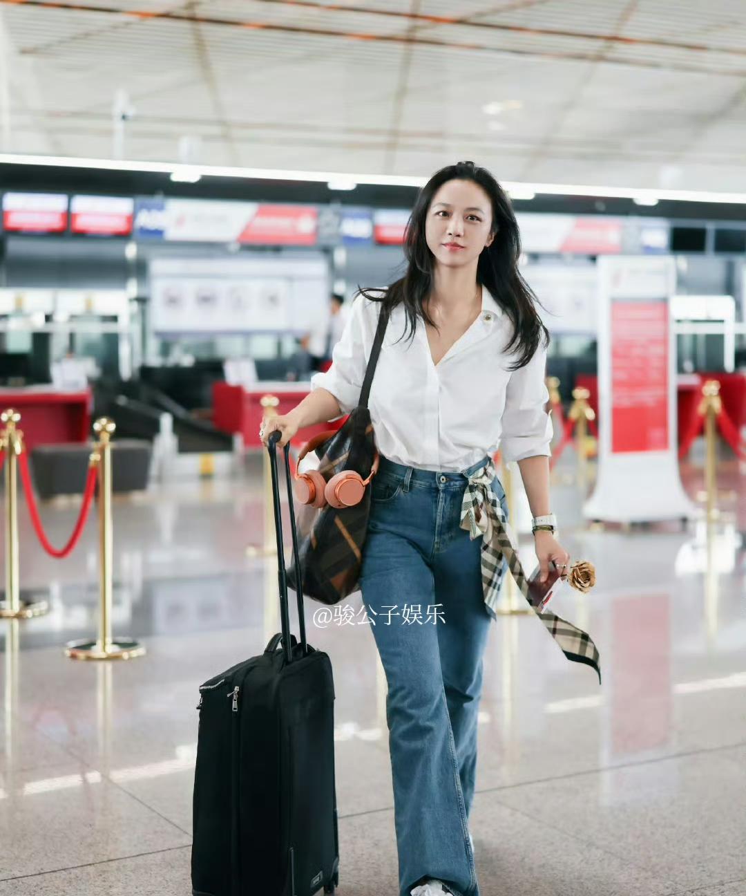 9月21日,演员汤唯现身机场,启程前往伦敦参加时装周。她以一身简约的白衬衫搭配牛仔裤,长发披肩,造型干练又不失优雅。尽管当日是纯素颜状态,汤唯的皮肤依然紧致细腻,五官高级耐看,轻松驾驭镜头的近距离拍摄,完全看不出已是45岁的年龄。她身材保持得极好,腰细腿长,丝毫没有产后发福的迹象。汤唯身上那份独特的松弛感与清冷文艺气质,让她宛如从电影画面中走出,气场强大,尽显国民女神风范。