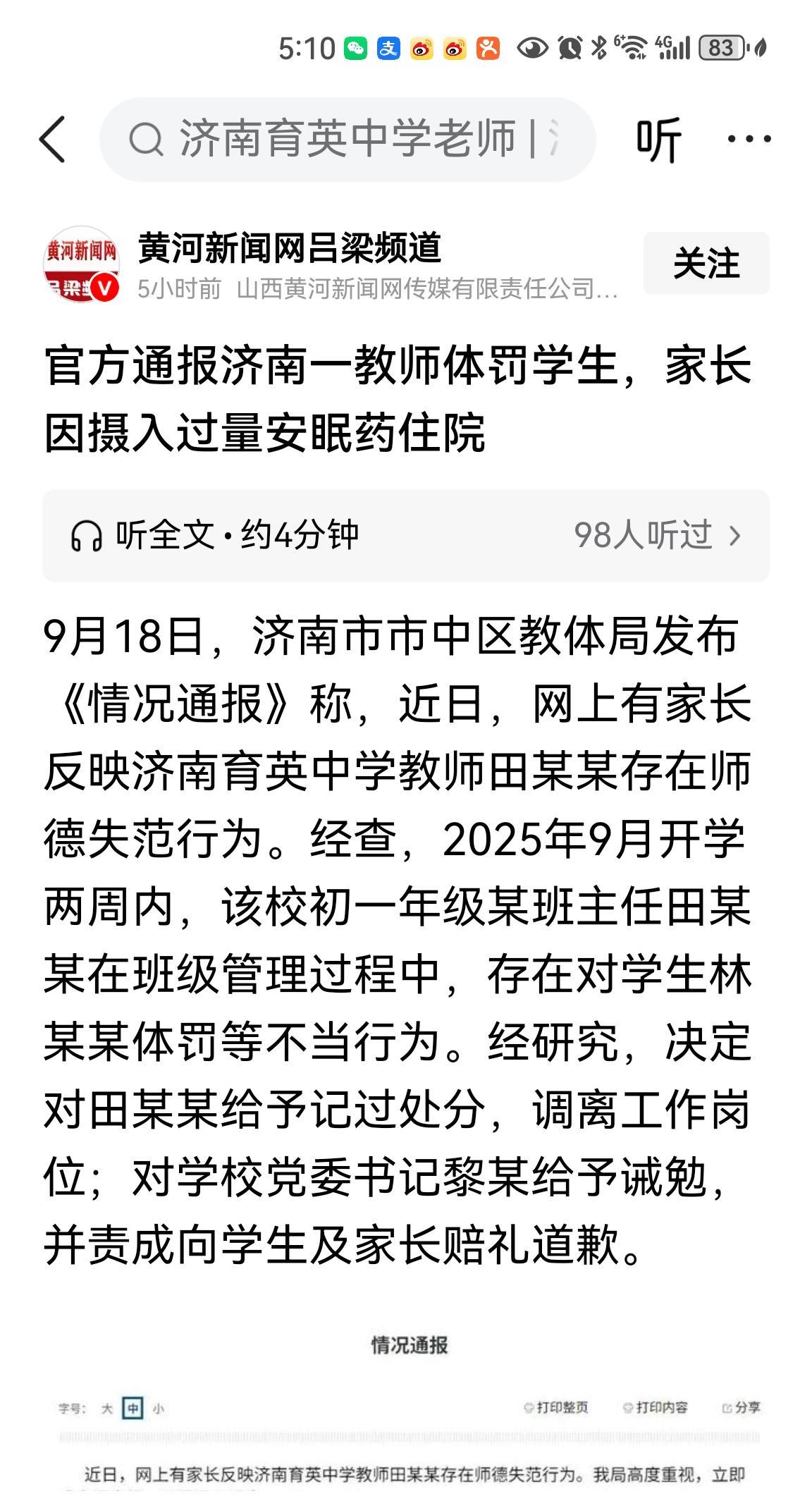 #学生遭体罚家长吃过量安眠药住院# 刚刚看到媒体报道: 育英中学维权妈妈付女士