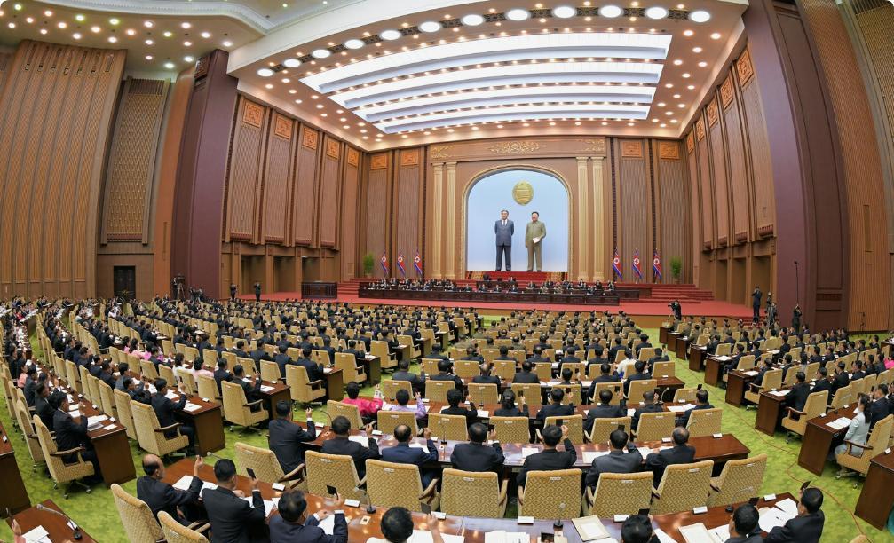 金正恩元帅近况照片:在第十四届最高人民会议第十三次会议上发表讲话。 时间是9月2