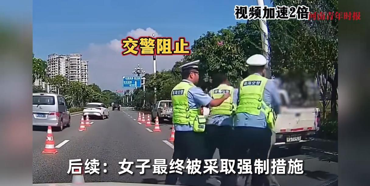 “不作就不会死!”9月18日,广东珠海,一女子在马路上被交警拦住后,拒不配合执法