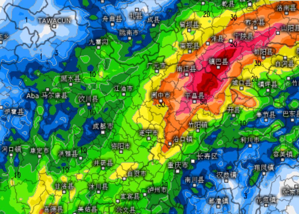 从卫星云图上来看,今天下午四川、重庆一带云量都比较多,就除了巴中个别区有点小范围
