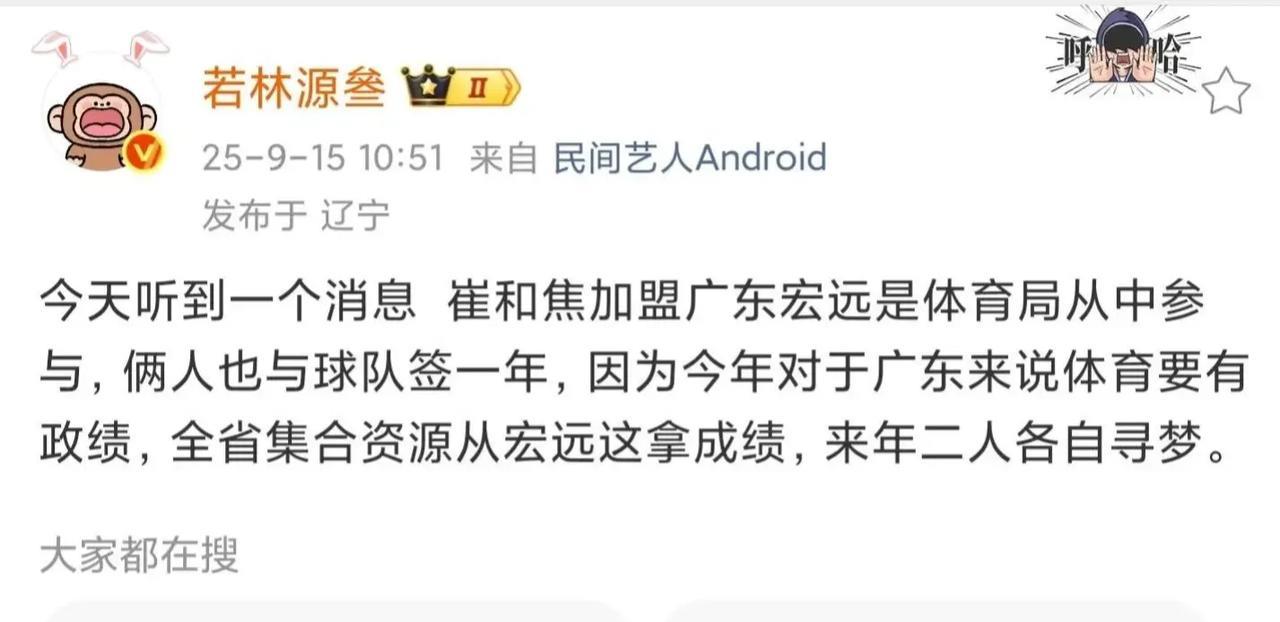 崔永熙4年B类签约广东是谣言,辽宁自媒体说他只签一年才是事实。CBA官网更新,崔