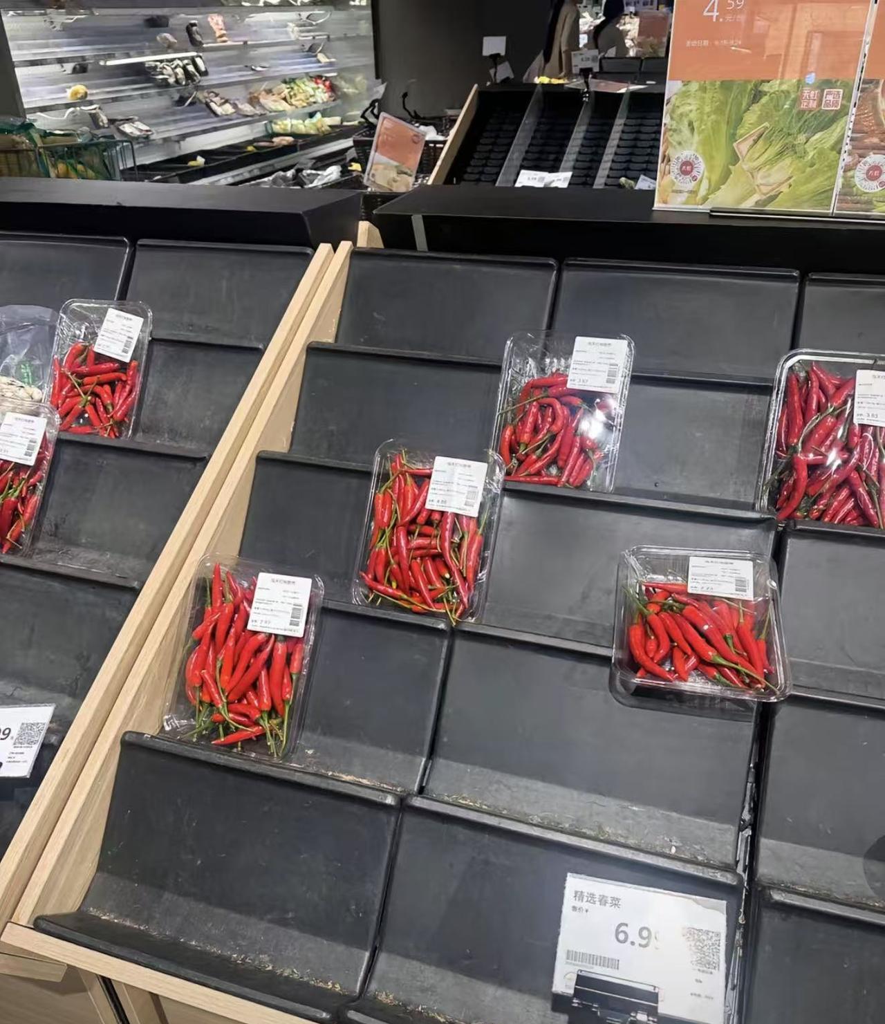 #记录我的2025#这个风王桦加沙,真的是带着它的威力来的。 在菲律宾那边,已经是掀起了狂风暴雨了。我们的的广东这边,早已经发出了气象预警,地区实行五停措施了。 在珠海这里,市民收到这五停的消息,立马就是涌向了超市去采购物资。 其中蔬菜是大家囤物资最多的食品之一,唯独就是辣椒,静静躺在货架上没人抢空。 看来都都是和广东人的饮食有关系的,宁死炒菜吃清淡一点,都不愿意多吃一丁点辣椒。