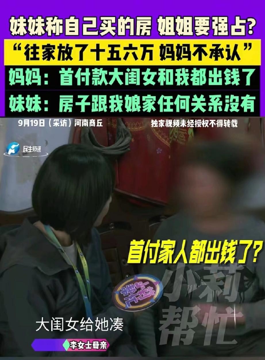 河南商丘河,女子离婚后,买了套学区房,登记在她自己名下,新房装修时,女子的姐姐给她资助了十几万。不料,房子装修好以后 ,姐姐却要霸占学区房。母亲也很偏心,站在姐姐这边劝说女子。女子非常委屈,她参加工作以后陆续给家里寄了十五六万,她严重怀疑母亲把这些钱给了大姐,这还不是拿着她的钱帮助她。女子:我自己付的首付,自己还着贷款,这房子和娘家没有任何关系。 原来,女子在参加工作后,一直心系家庭,陆续给家里寄回了十五六万,希望能为家里分担一些经济压力。这笔钱,女子怀疑母亲悄悄转给了大姐,她认为这相当于间接用她的钱去帮助了姐姐。而姐姐的资助,在女子看来,是出于亲情的一种支持,并非对房屋产权的索取。 新房装修完毕,原本应该是喜迁新居的时刻,却因为姐姐的态度转变,让这一切蒙上了阴影。姐姐突然提出要霸占这套学区房,理由是自己曾出资装修。 这突如其来的要求,让女子措手不及,更让她心寒的是,母亲也站在了姐姐那边,试图劝说她让步。女子感到十分委屈,她坚持认为,自己付的首付,自己还着贷款,这房子和娘家没有任何关系。 据了解,女子在购买这套学区房时,确实花费了不小的心思。离婚后的她,希望有一个稳定的住所,同时也是为了孩子的教育考虑,才决定购买学区房。她本以为,通过自己的努力,能够给家人带来更好的生活,却没想到会因此陷入家庭纷争。 姐姐的资助,原本是出于好意,女子也并未拒绝。但她从未想过,这份资助会成为日后争夺房产的借口。女子回忆,在装修期间,姐姐确实多次询问装修进展,并给出了一些建议,但从未提及产权问题。如今,房子装修好了,姐姐却突然变脸,这让女子感到难以接受。 而母亲的态度,更是让女子心寒。在母亲看来,姐姐出资装修,理应得到一些回报。她试图劝说女子,看在亲情的份上,让姐姐一些。但女子认为,亲情不是用来交易的,她不能因为姐姐的资助就放弃自己的房产。 这场家庭纷争,看似是因为一套房子而起,实则背后隐藏着更深层次的问题。女子在婚后一直努力工作,希望能得到家人的认可和支持。然而,当她真正需要家人理解的时候,却遭遇了这样的对待。她不禁开始怀疑,这个家,是否真的如她所想的那样温暖。 在这场纷争中,女子表现出了坚定的态度。她表示,自己会通过法律途径来维护自己的权益。同时,她也希望家人能够理性对待这个问题,不要因为一套房子而破坏了彼此之间的亲情。 这起事件不仅仅是一个家庭内部的纠纷,更折射出了现代社会中,人们在面对亲情与利益冲突时的无奈与挣扎。当亲情与利益发生碰撞时,我们应该如何抉择?是坚守亲情,还是维护自己的利益? 如今,这起家庭纷争仍在继续。女子表示,她会坚持自己的立场,不会轻易让步。而家人之间的裂痕,也需要时间去修复。希望这起事件能够早日得到妥善解决,让女子和她的家人能够重新找回那份失去的亲情与温暖。 那么,你们如何看待这起家庭纷争呢?欢迎在评论区留下你们的看法。