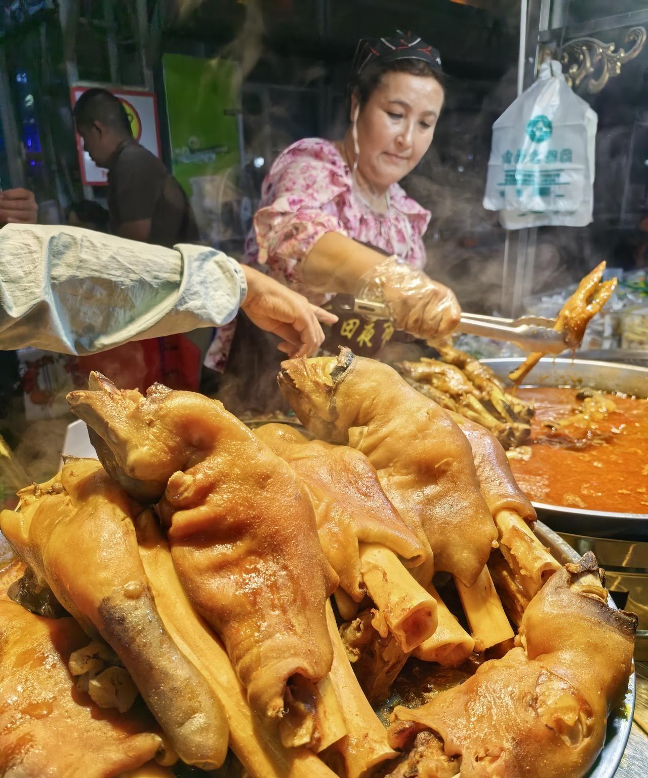 作为去过3次新疆的山东人,对新疆美食那是爱得深沉。来到新疆,烤羊肉、烤南瓜、羊蹄子、牛蹄子、烤鸽子这些美食可千万别错过。烤羊肉外焦里嫩,滋滋冒油,一口下去香得直迷糊;烤南瓜香甜软糯,带着一股自然的清甜;羊蹄子和牛蹄子Q弹有嚼劲,满满的胶原蛋白;烤鸽子肉质鲜嫩,香气四溢。 除了这些,大盘鸡也不容错过,鸡肉嫩、土豆香,皮带面吸满汤汁,哧溜一下就进肚。新疆美食就像这里的故事一样丰富,来了就敞开了吃! #新疆美食风光# #新疆美食# #新疆美食旅游#