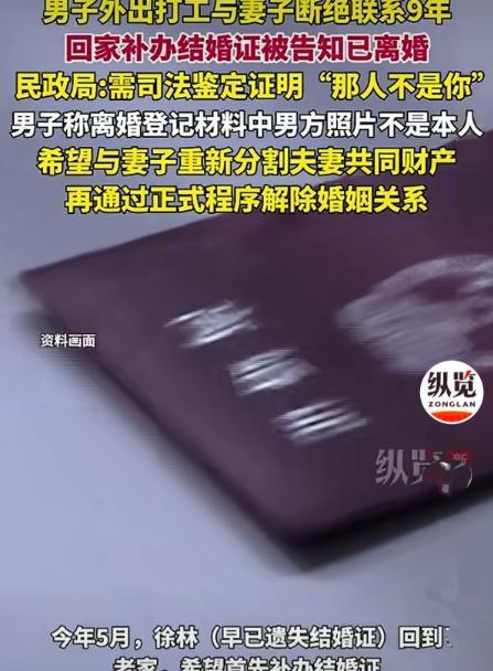 江西丰城,男子与妻子因家庭矛盾关系恶化,一气之下外出打工,9年未与妻子联系。他觉得这样的婚姻已名存实亡,决定离婚,可结婚证已找不到,男子决定回老家先补办结婚证,然后再与妻子离婚,谁知在窗口打印材料时被告知他已离婚多年。男子一头雾水,离婚日期是他在外地打工时,他怀疑妻子与他人冒名办理了离婚手续,导致自己被离婚。他决定走法律程序,恢复其合法的婚姻状态,依法重新分割夫妻共同财产。随后再通过正式程序解除婚姻关系。 江西丰城的徐林怎么也没想到,自己在外打工九年没联系的妻子,竟然在他毫不知情的情况下,把婚给离了。更离谱的是,离婚登记材料上的男方照片,压根不是他本人。 根据9月20的报道。九年前,徐林因为和妻子家庭矛盾闹得实在没法调和,一咬牙就离开江西老家,跑到外省打工去了。这一去就是九年,和妻子彻底断了联系。 他觉得这婚姻早就名存实亡了,想着回来把婚离了,重新开始生活。可结婚证早就不知道丢哪儿了,他只能先回老家补办结婚证,再走正规程序离婚。 今年 5 月,徐林满怀心事地回到江西丰城,直奔民政局打算补办结婚证。谁知道在窗口打印材料的时候,工作人员的一句话让他懵了 ——“你已经离婚好多年了”。 徐林当时就傻了,自己一直在外地打工,啥时候离的婚?他赶紧追问,这才知道离婚日期是他在外打工的那段时间。 看着离婚登记材料上那个陌生的男人照片,徐林心里的疑云越来越重,他怀疑是妻子和别人冒名顶替办了离婚手续,自己就这么 “被离婚” 了。 徐林越想越觉得不对劲,他拨打了 12345 热线投诉。丰城市民政局婚姻登记部门的回复是,办理离婚时证件都是齐全的,关于他反映的被冒名顶替离婚的事,建议走法律途径解决。 而且民政局还提出,需要他提供司法鉴定证明 “那人不是你”。这可把徐林难住了,好好的一个人,还要证明离婚材料上的人不是自己,这事儿听起来就透着荒诞。 徐林的遭遇传开后,不少人都替他抱不平。大家都觉得,就算夫妻感情破裂了,也得双方知情、走正规程序才行。这种冒名顶替的操作,不仅侵犯了徐林的合法权益,也把婚姻登记的严肃性当了儿戏。 从这件事里,也能看出咱们国家在法治建设上的进步。现在徐林决定走法律程序,恢复自己合法的婚姻状态,依法重新分割夫妻共同财产,然后再通过正式程序解除婚姻关系。 这说明咱们普通人在遇到权益被侵犯时,知道用法律武器来维护自己,这背后是国家法治体系不断完善给的底气。 仔细想想,徐林的经历挺让人唏嘘的。本来是家庭矛盾,结果演变出这么一出 “被离婚” 的戏码。要是当初双方能好好沟通,或者徐林在外出打工时也留意着家里的情况,是不是就不会有今天这档子事了? 现在徐林的维权路还在继续,他能不能顺利证明自己 “被冒名”,能不能重新分割财产,再合法离婚,都是未知数。 但这件事也给大家提了个醒,婚姻不是儿戏,不管是结婚还是离婚,都得按规矩来。同时,咱们的婚姻登记部门也得把好关,别让这种冒名顶替的事情再发生。 你觉得徐林能顺利维权吗?要是你遇到这种事,会怎么做呢?不妨在评论区说说你的看法。