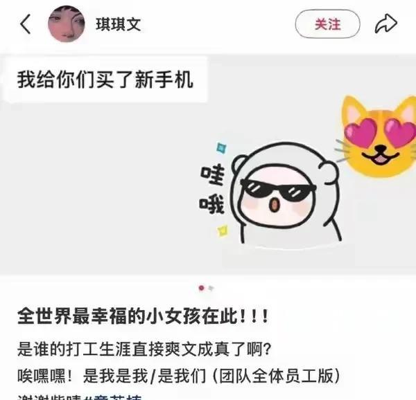 章若楠给工作室全体员工送福利,这是好事啊。只不过间接性的给苹果做了一次免费宣传,哈哈哈哈哈。如果这次送的是华为,估计更加被吹爆了。不过章若楠小可爱在群里通知说了:大家也可以自主选择别的品牌和型号。 虽然买了苹果,让网友很生气,但是人家的出发点是好的啊,慰劳牛马最好的方式除了按时准点发工资,当然还有这种意外的惊喜了。