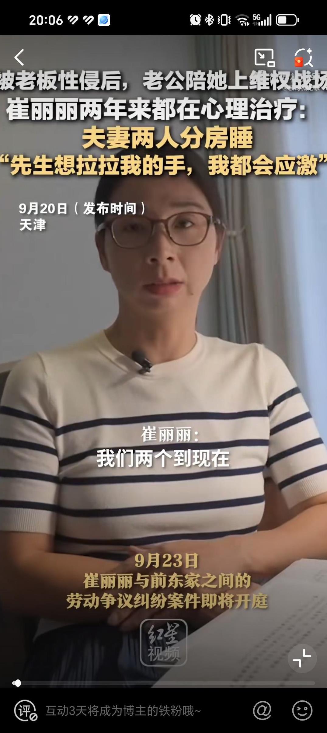 崔丽丽首例职场性侵赔偿案,老板,崔丽丽,崔丽丽老公三败俱伤,最终没有赢家。这件事真的是老板见色起意吗? 1、当初酒店大堂崔丽丽是拦住老板脖子的。 2、性侵之后两人光着躺床上,但是崔丽丽衣衫不整的回到自己房间洗澡了,没有生物证据,最后还是隔壁房间人录音有不要不要作为证据的声音。崔丽丽当时被性侵为什么不报警。洗澡了还,但是回家之后打电话给老公在报警。 3、现在官司赢了,但是夫妻两人700天没躺在一张床上,因为崔丽丽的应激创伤两人可以一直这样牵手都困难的过一辈子吗? 这个老板地中海老头确实不太好看,但是崔丽丽也是40s岁职场女性 ,心理接受能力真的感觉很差了。至少不应该这样,事情解决了,希望可以放宽心然后投入到新工作新生活,一直活在过去感觉没意义。 崔丽丽如果一直这样他老公会不会离他而去。很多时候男人出轨都是犯了全天下男人都会犯的错,他会自责然后好几年不找女人吗? 所以女人被狗咬了一口不应该说自己倒霉,不能再咬狗一口啊!所以崔丽丽还是得打起精神来