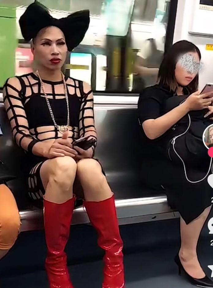 在广州地铁里,出现了一个打扮很特别的美女,她的头上不知道是打了一个大大的蝴蝶结,