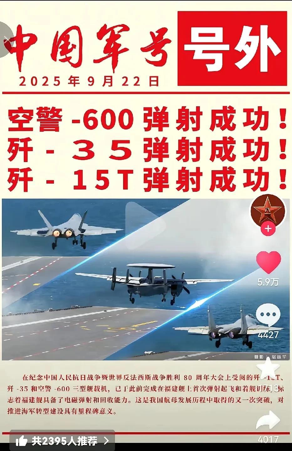 纯属巧合吗?哈哈! 美国议员代表团访问中国,中国的三大舰载机从福建舰上成功弹射并且稳稳的回到了福建舰甲板上! 他们回去又将会为我们的产品做代言人了,不得不说,每次的重大武器亮相都是踩着点上的! 听说特朗普也要来,那会给老特来一个什么大惊喜呢?他可是全球最好的产品代言人了![大笑]