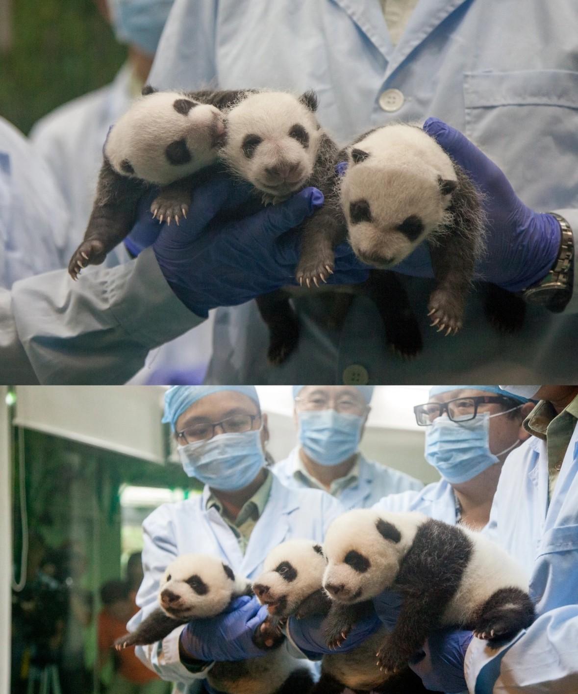 广东长隆这对全球唯一熊猫三胞胎,大家都知道吧~ 当年三姐弟萌帅酷刚出生时,真的又