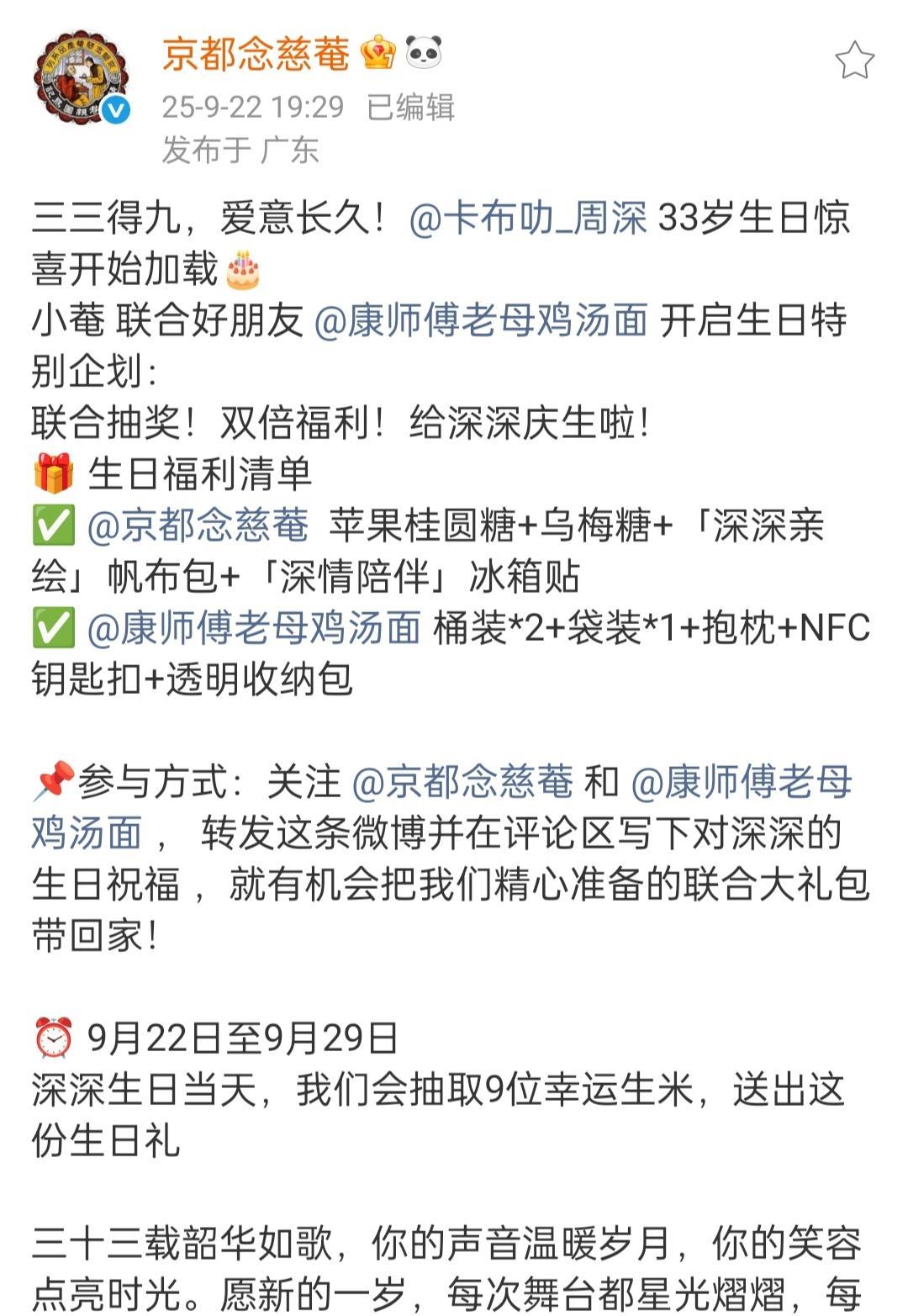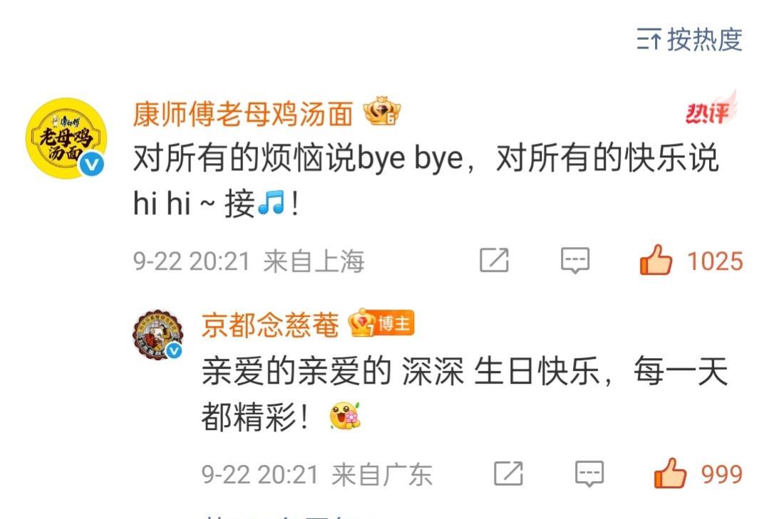 两大国民品牌联名,联名产品:代言人!周深![笑哭] 还有一个星期就是周深929的生日了,京都念慈菴和康师傅老母鸡汤面两个品牌联名为代言人庆生! 康师傅老母鸡汤面: 对所有的烦恼说bye bye,对所有的快乐说hi hi~接[听歌]! 京都念慈菴: 亲爱的亲爱的 深深 生日快乐,每一天都精彩! 这俩人还唱上了,怎么感觉你俩办事了,把周深当成了伴手礼了 ![笑哭] 生米给这两品牌取了个名叫:慈母![笑哭] #周深#