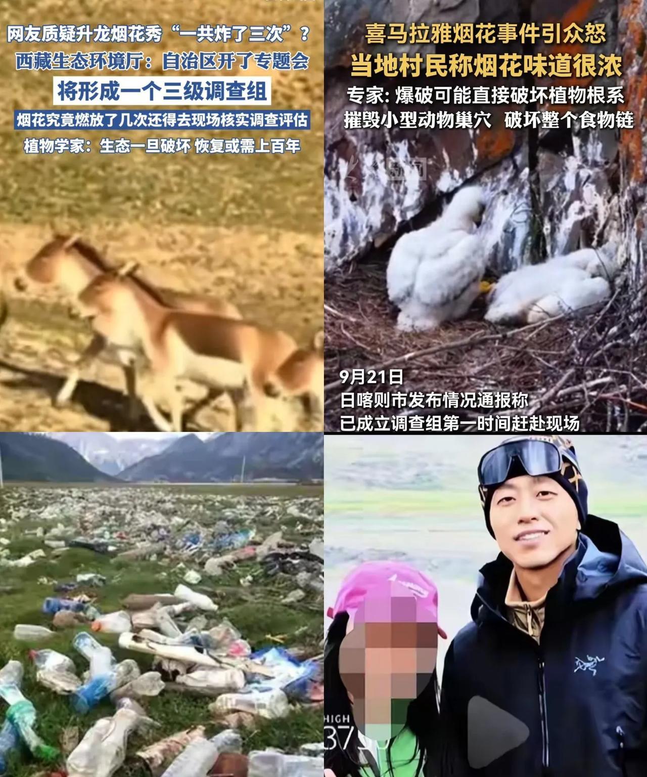 其实大家懂的!如果不是被一些博流量的人追着这件事不放,这个放点烟花算个屁事!!这群人看他是名人,追着他不放就是为了自己的流量!中国到处都是破坏山体,河流你不去报道?因为不是名人破坏没流量!!