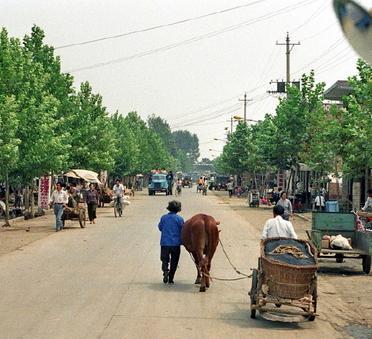 这是八十年代农民最为普遍的行动与形象。当时,农村中家家户户都有一辆人力板车。这样