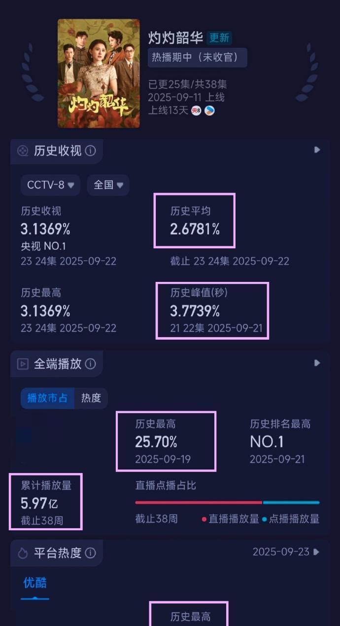 央视八套的年度收视冠军记录竟然被《灼灼韶华》打破了!此前《生万物》是一路领跑,成了央八三年收视之冠,本以为可以稳坐2025央八年冠之位,没想到《灼灼韶华》霸气逆袭,直接拿下全国收视第一! 热依扎凭借出色的演技,把女主诸韶华的坚韧、聪慧诠释的淋漓尽致!