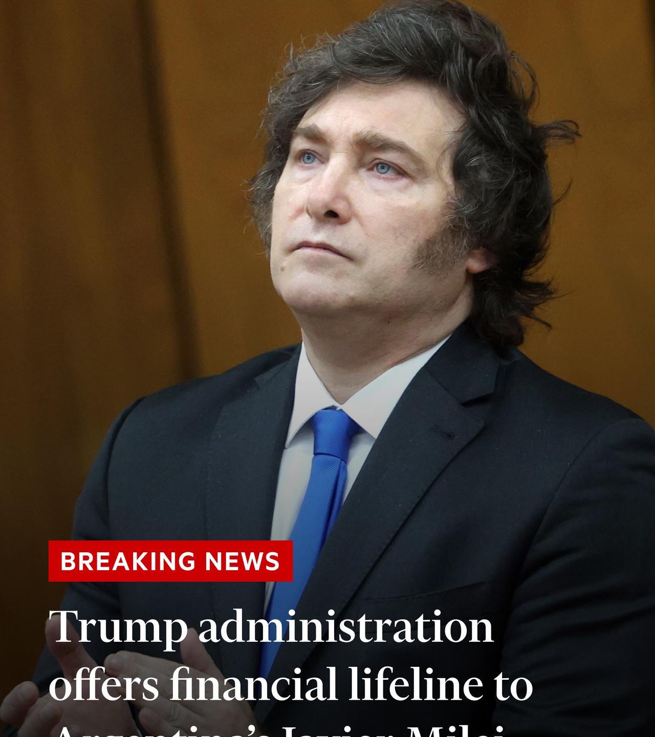 米莱求美国救阿根廷比索的后续——【美国将全力帮助阿根廷渡过最严重的市场动荡期】。 美国财长贝森特:美国将解锁所有选项,以强大的规模,救阿根廷比索。 米莱立刻网络发文,感谢贝森特和特朗普【对阿根廷人民无条件的帮助】。真的无条件吗?这就很好笑了。