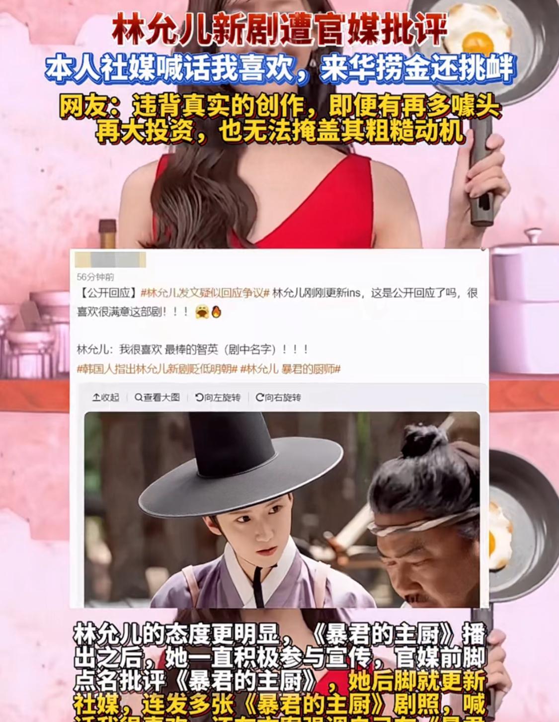 为什么要支持限韩令,看看今日的两部韩剧就明白了。 一个迪斯尼出品、全智贤主演的《暴风圈》,剧中歪曲现代中国,反派角色均讲中文,给中国扣上“好战”的帽子,大连成了贫民窟; 另一个奈飞出品、林允儿主演的《暴君的主厨》,剧中篡改历史史实,贬低明朝形象,明朝使臣成了无能反派,中国顶级厨师还得向朝鲜学艺,甚至有明朝人偷朝鲜辣椒等。 美韩想在文化上搞垮东大的心从未死过,我们必须提高警惕,不需官方出手,团结的我们都能锤爆它们。