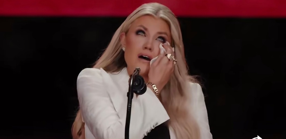她显然早就预料到自己在追悼会上会用右手擦眼泪,这样就能巧妙地展示出那颗闪闪发光的钻戒。再看她擦眼泪的动作,生怕弄花了精致的妆容。在如此悲痛的时刻,居然还能想着保持形象、打扮得如此完美,实在让人难以理解。