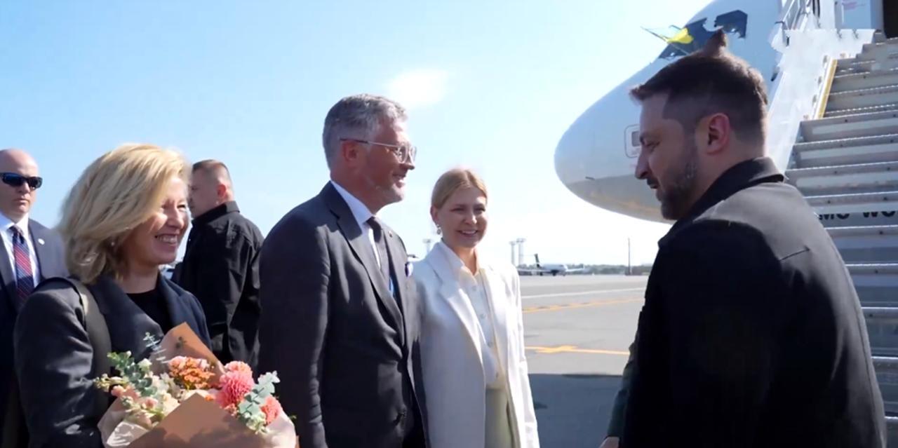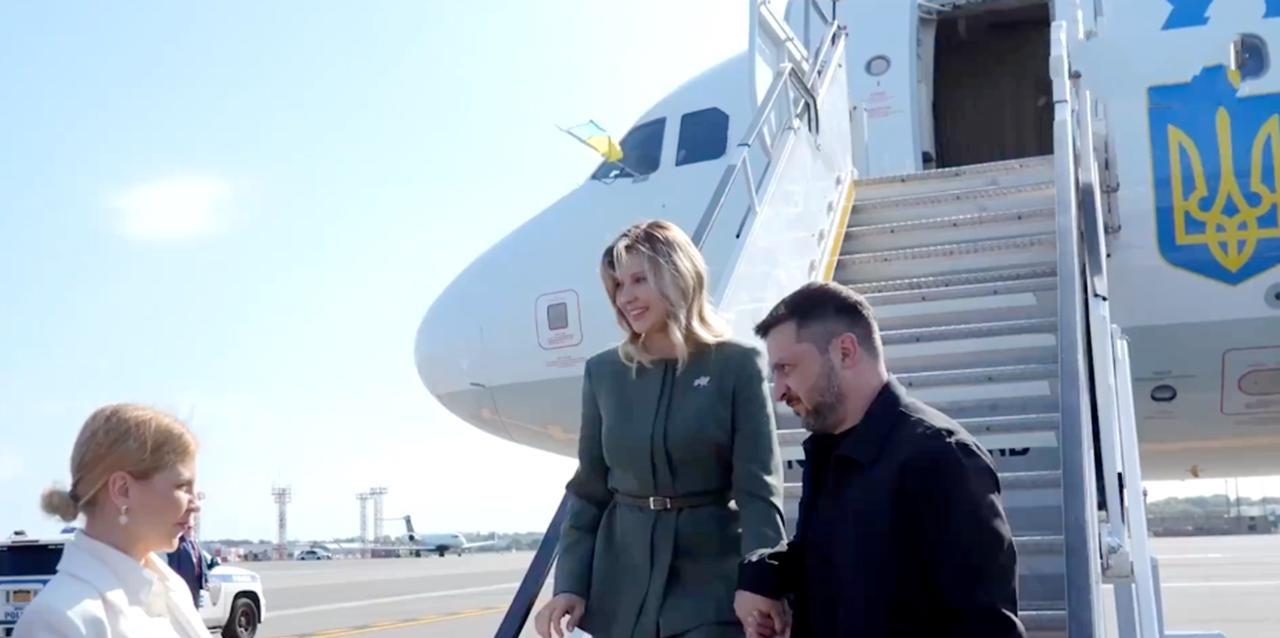 乌克兰第一夫人抵达纽约,一身墨绿色套装超优雅 9月22日,乌克兰总统携夫人抵达纽