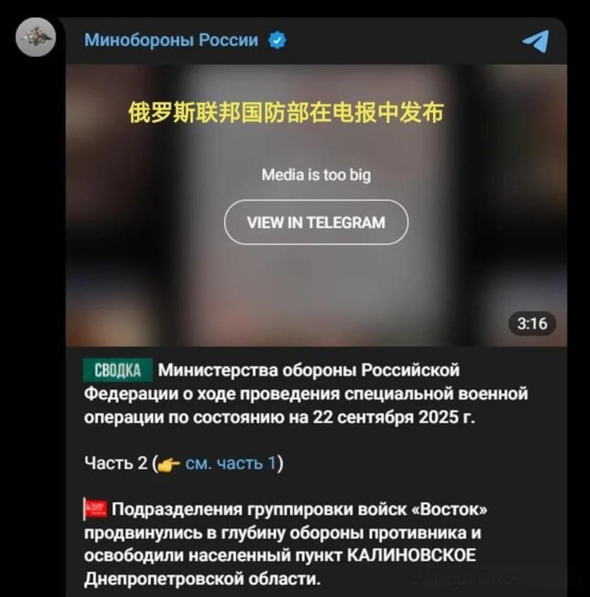 俄罗斯宣布占领卡利诺斯基:乌方报告真实情况 据“Suspilne Dnipro”报道,相应的公告出现在俄罗斯国防部的电报频道中,但“第聂伯罗”部队作战集群小组发言人 贝尔斯基指出,这一信息并不属实。 俄罗斯国防部在一份声明中说:俄军东方集团推进到敌人的防御深度,解放了第聂伯罗彼得罗夫斯克地区卡利诺夫斯科耶的定居点。 乌克兰指挥部报告称,俄罗斯方面在第聂伯罗彼得罗夫斯克地区,据称使用了渗透战术。据他们介绍,敌人以 1-2 名士兵为一组,深入定居点区域,拍摄宣传视频。 第聂伯作战方向的代表解释说,这些团体穿着迷彩服和雨披,在杂草丛生的地区四处走动,因此,他们有时能够渗透到乌克兰防御的深处。据称,每个小组都有一个特定的任务:几名士兵前往村庄郊区,展开旗帜并拍摄视频,然后由宣传资源发布,俄罗斯联邦国防部将其描述为“新的胜利”。 该发言人强调,乌克兰军队对此类渗透企图做出了迅速反应。据他介绍,这些组织很快就被无人机袭击、炮击或突击部队的清洗摧毁,据称,占领者“占领”的定居点,仍在乌克兰的控制之下。 媒体还称,截至 2025 年 9 月 22 日,据军方称,俄罗斯成功控制了第聂伯罗彼得罗夫斯克地区的五个村庄--新格奥尔基耶夫卡、扎波罗热、扬瓦尔斯克(扬瓦尔斯克)、马利耶夫卡和沃罗诺耶。与此同时,在其他七个定居点,尽管俄罗斯军队采取了积极行动,但乌克兰部队仍在坚守阵地。 此外,值得注意的是,在Deepstate地图上,第聂伯罗彼得罗夫斯克地区的卡利尼夫斯克村没有被占领,俄罗斯部队位于离该定居点更远的地方,靠近新米古拉耶夫卡村。 同日消息,乌军在多布罗皮利亚方向扩大了控制区并摧毁了敌方的人力和装备。当天,已经收复了1.3平方公里的领土控制权,在顿涅茨克州波克罗夫斯基区,清剿2.1平方公里的敌人。