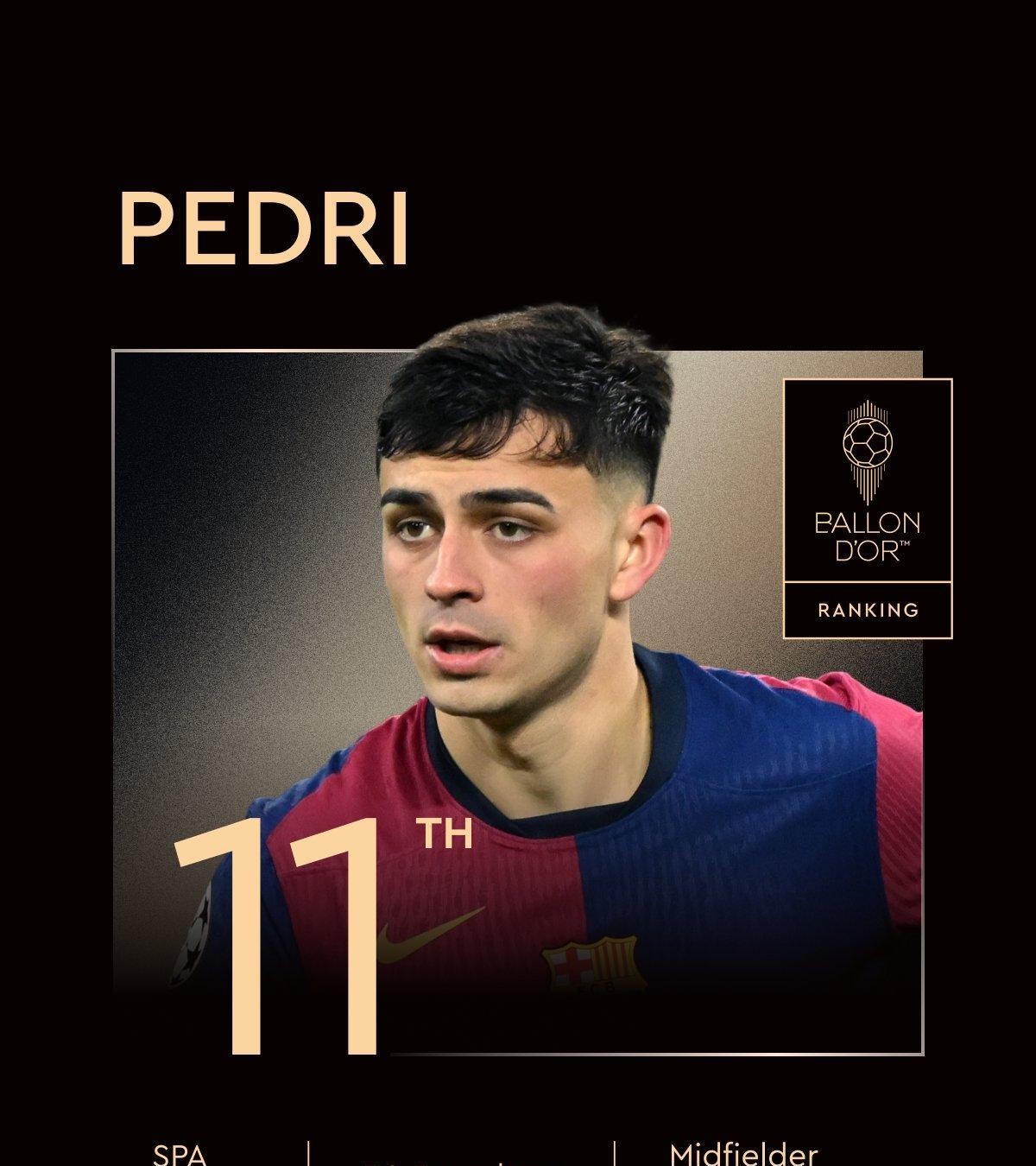 躺着中枪!佩德里金球奖排在第十一位,没想到他身前的帕尔墨,却被喷的体无完肤。巴萨球迷别无理取闹了,佩德里被区别对待的原因,你们自己还不知道嘛[发怒][发怒] 毫无意外登贝莱拿下了今年的金球奖,他的最大竞争对手亚马尔排在第二位。如果说金球奖的前两名,是大家关注的最大焦点外。那么这个球员的排名,绝对是今年金球奖另一个比较大的焦点,他就是佩德里。 在金球奖发布的排名第十一的佩德里的帖子下,无论是球迷,媒体,还是记者都同时表达了自己的不满。让人意外的是,大部分内容里排名第十的帕尔墨,却意外被喷了。 有的球迷表示,帕尔墨排名前十,而佩德里却排在了第十一位,这简直太疯狂了。 有的球迷表示,他们居然将帕尔墨排在了佩德里前面,这简直是耻辱。 那么佩德里到底有资格排在帕尔墨前面嘛?佩德里作为巴萨的中场大脑,他几乎踢满了巴萨的每一场比赛,在关键比赛关键时刻,他的稳定发挥让人看到了世界前五的实力。所以足球各界人士,对这样的排名不满还是合情合理的。但是其他人可以抱怨,只是唯有巴萨球迷没必要抱怨! 首先,巴萨本赛季也就一个西甲冠军,可以拿的出手。但是他们却有四个球员,入围了金球奖的前20,这样的数据也就比大巴黎少,试问凭什么西甲冠军影响力这么大呢? 英超冠军里也就萨拉赫一个人,德甲冠军也就一个凯恩,而且仅仅排在了13位,剩下的意甲更是没脸说。所以说巴萨球员,在金球奖排名里可谓大放异彩。 其次,亚马尔真的有实力排在金球奖前二嘛?相信无论是亚马尔,还是拉菲尼亚都分了佩德里不少票数吧。毕竟作为巴萨大脑的他,进攻数据没有拉菲尼亚那么亮眼,而曝光度更没有亚马尔那么高。 但是这样的排名,一点也不影响他在当今足坛的地位。无论排名第几,他就是当今当之无愧的世一中,而在这里很有必要替帕尔墨喊一下冤。 人家可是新世俱杯冠军,而且在决赛季也算是大放异彩,英超前四的集体荣誉,而佩德里又有什么呢?金球奖排名有他自己的算法,但是相信这种算法一定有他自己的漏洞。所以巴萨球迷别不满,金球奖已经够给你们面子的了!