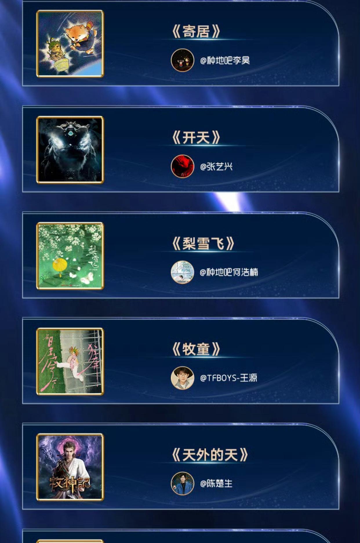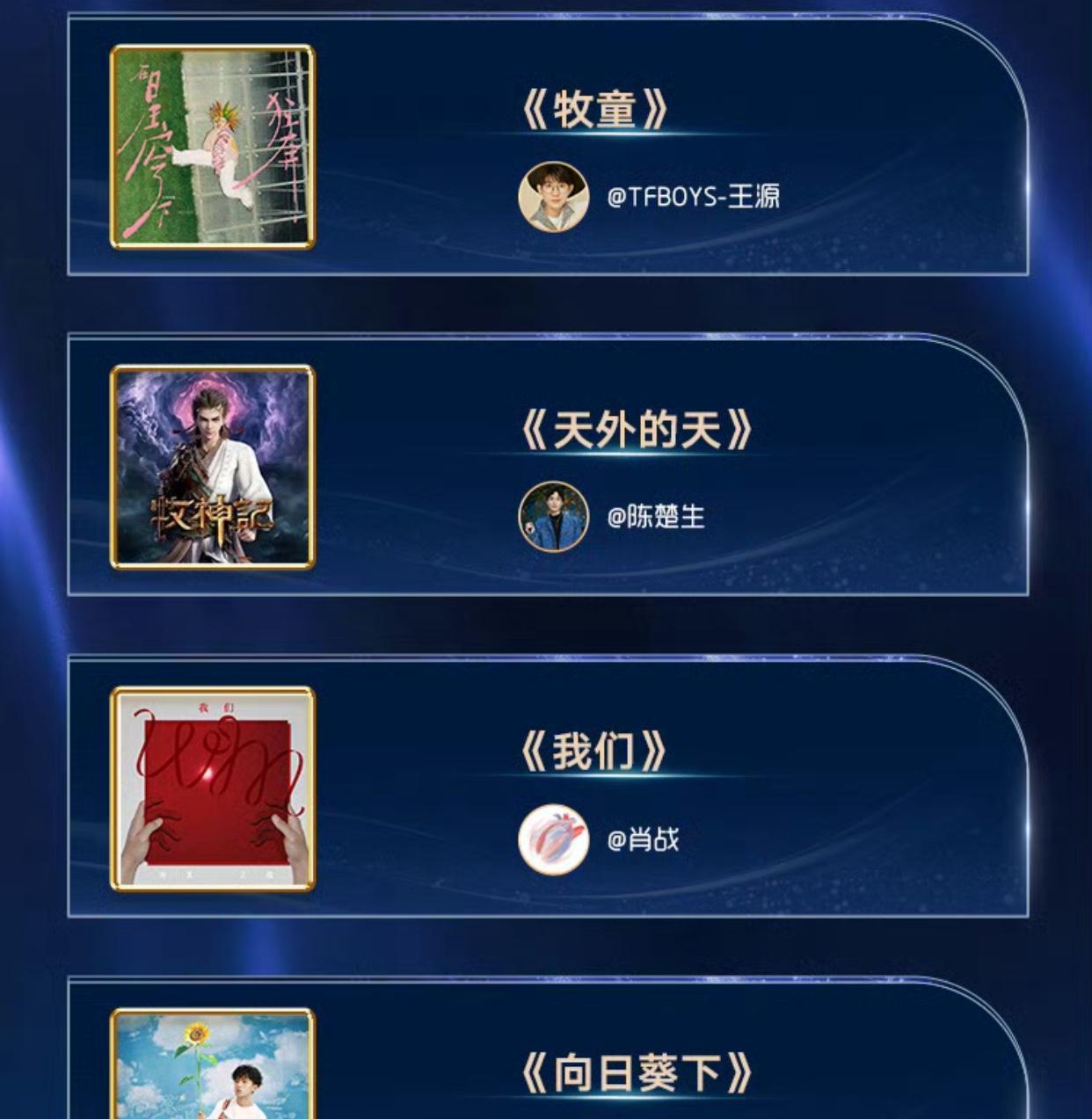 2025音乐盛典年度推荐十大MV! 一:《CHAKA》——张峻豪 二:《不重逢》——华晨宇 三:《除了快乐禁止入内》——黄子弘凡 四:《寄居》——李昊 五:《开天》——张艺兴 六:《梨雪飞》——何浩楠 七:《牧童》——王源 八:《天外的天》——陈楚生 九:《我们》——肖战 十:《向日葵下》——王一珩 今年的年度十大MV你看过几个了?