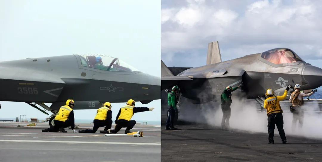 歼35与F35C上舰近似角度对比! 虽然美国福特号上搭载了电磁弹射,但是截止到