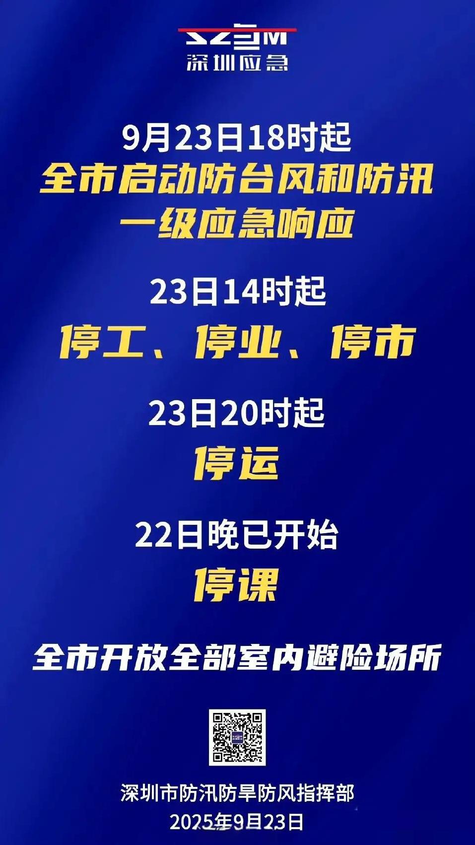 现在压力给到广州!随着深圳23日14时宣布五停,现在整个珠三角就剩广州唔停了。 虽然深圳这边现在还是风平浪静,一派岁月静好的景象,但是深圳还是启动一级应急响应,23日14时起,全市范围内实行停课、停运、停工、停业、停市。 然而同时广东经济强势的广州还在坚挺中,不愧是大哥,有魄力! 不过不管如何,台风天气大家还是非必要不要出门,注意安全!