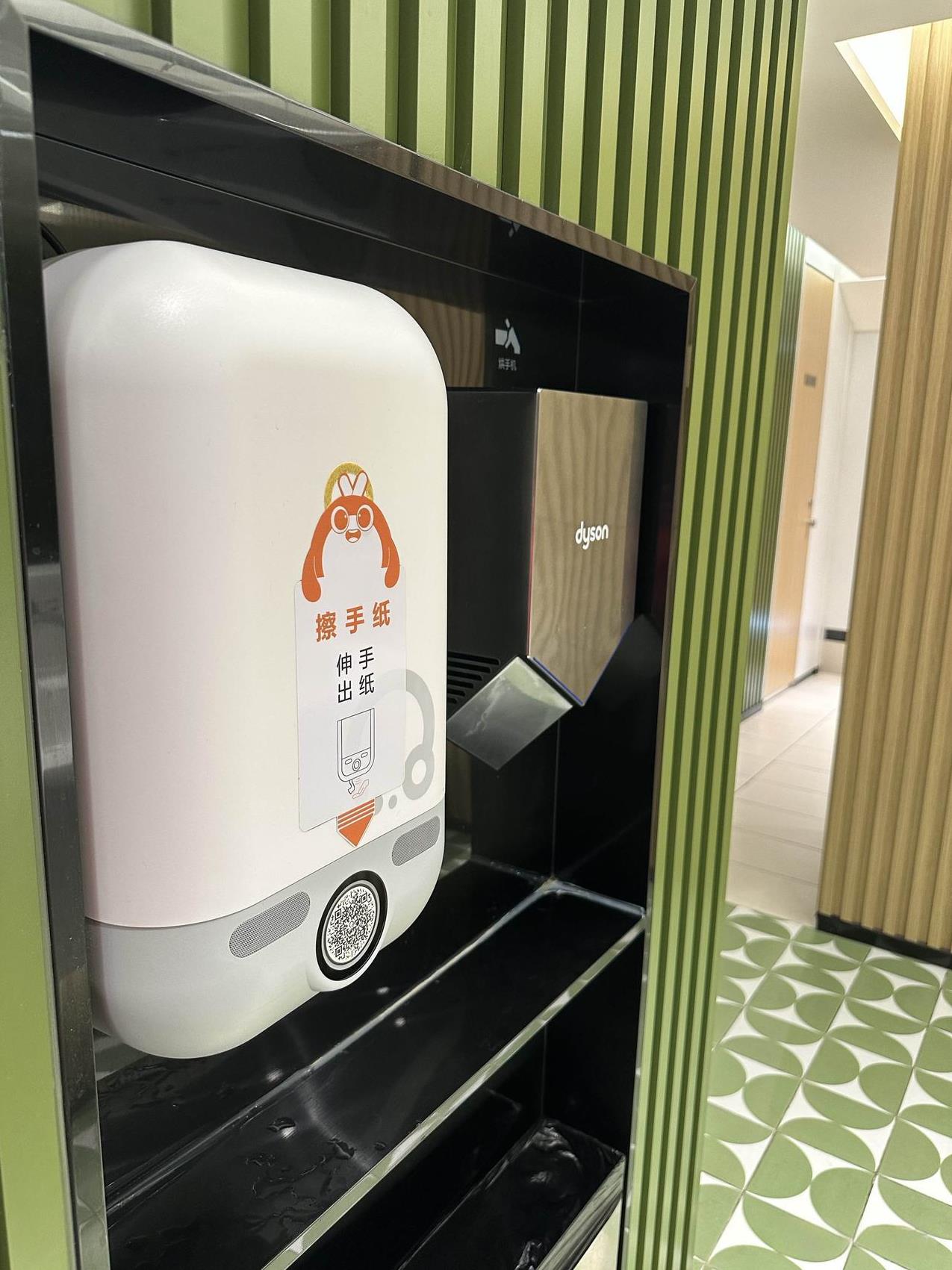 北京商场的卫生间越来越好了,有点日本那个味了。 干净不说,审美也在线。 清新淡雅的绿色,内有两个挂钩、自动出纸机,洗手台干净整洁,几乎都是白色,如厕也成为一件享受的事情了。