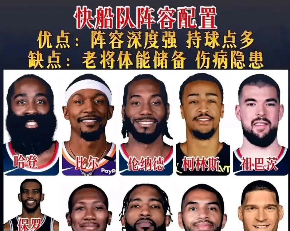哈登竟然是快船新赛季的头牌 美国ESPN选出来新赛季30支球队的头牌球星,快船队竟然是哈登,早已过巅峰的哈登上赛季入选了常规赛最佳阵容第三阵容和全明星 快船前头牌莱纳德饱受伤病困扰和无休止的莫名其妙的缺阵,再加上休赛期联盟调查莱纳德和快船的阴阳合同调查证据正越来越清晰,现在ESPN也不看好莱纳德了 快船休赛期的引援工作很到位,随着科林斯、比尔、保罗、大洛佩兹的到来,快船阵容除了年龄偏大外,短板几乎都完美的补强了,在竞争激烈的西部,快船还是有竞争力了