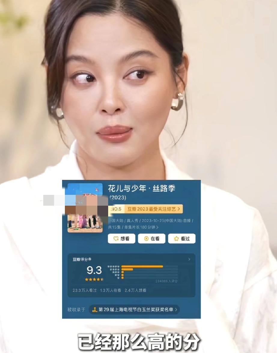辛芷蕾,说对了 辛芷蕾获得威尼斯影后,正值事业巅峰时期,她说,以后估计不会再上综艺当常驻嘉宾了,因为已经玩够了。 而且她参加的那季《花少》获得9.3的高评分,很难有综艺能超过花少,以后没必要参加常驻综艺透支一个演员的神秘感。 辛芷蕾拎得清,虽然她是综艺节目的受益者,但也不能经常参加综艺,观众要是经常看她也会看腻,还不如见好就收,趁着事业巅峰期拍更多好作品,这才是长久之计。