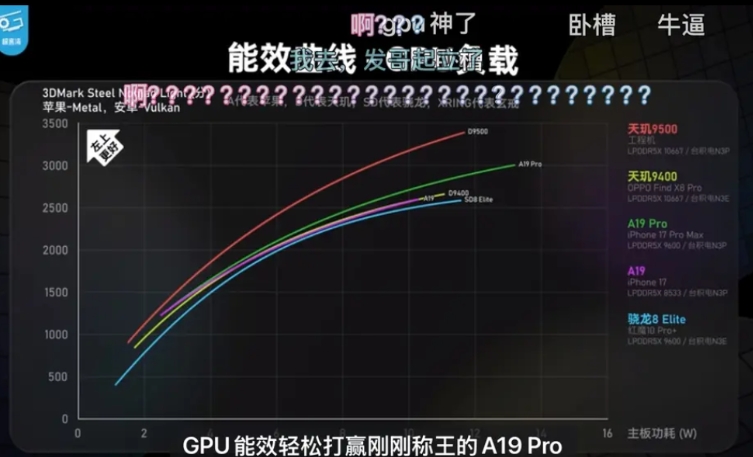 发哥今年CPU拉了,GPU超级无敌强。CPU单核跑分并没有发布会上的4000+,只有3600多,多核能效甚没打过标准版A19,单核能效可想而知,必定是被爆锤。但GPU提升超级无敌大,光锥测试分数比去年提升3倍,直接干掉A19pro,GPU能效曲线更是秒杀A19pro。但是安卓生态可能也无法发挥这颗GPU的全部性能。毕竟想在手机上玩real的3A游戏只有在IOS上。总之今年发哥有点偏科,就看骁龙了。