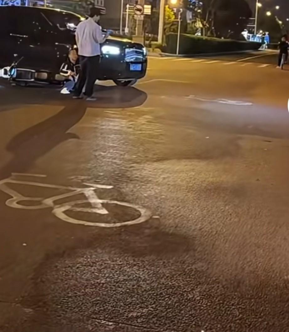 上次看到这个图片时,说是中学生放学的时候开电动车撞上劳斯莱斯