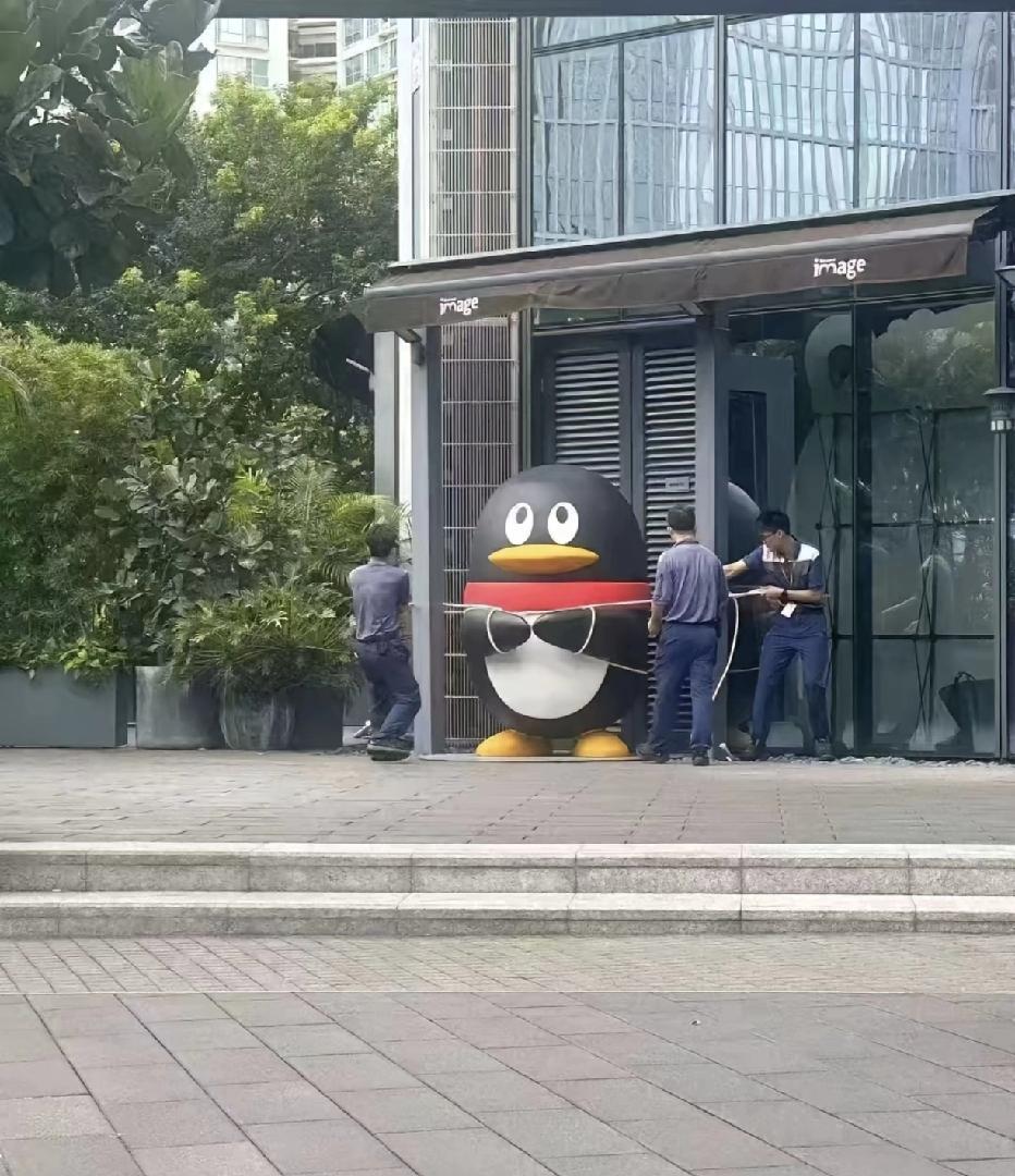 #记录我的2025#这次台风桦加沙,来势汹汹啊,对于深圳来说,一点都不敢轻防。 在深圳的地标卡通像,奶龙、QQ企鹅都被工作人员用绳子绑了起来,为的就是加固物体,不要被台风吹跑了。 看到这些卡通像被五花大绑,真是有点被可爱到了。[狗头]