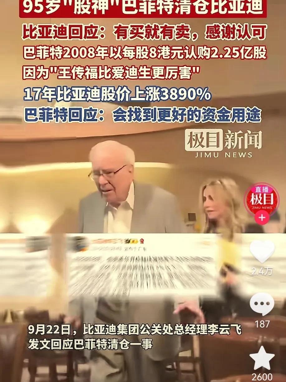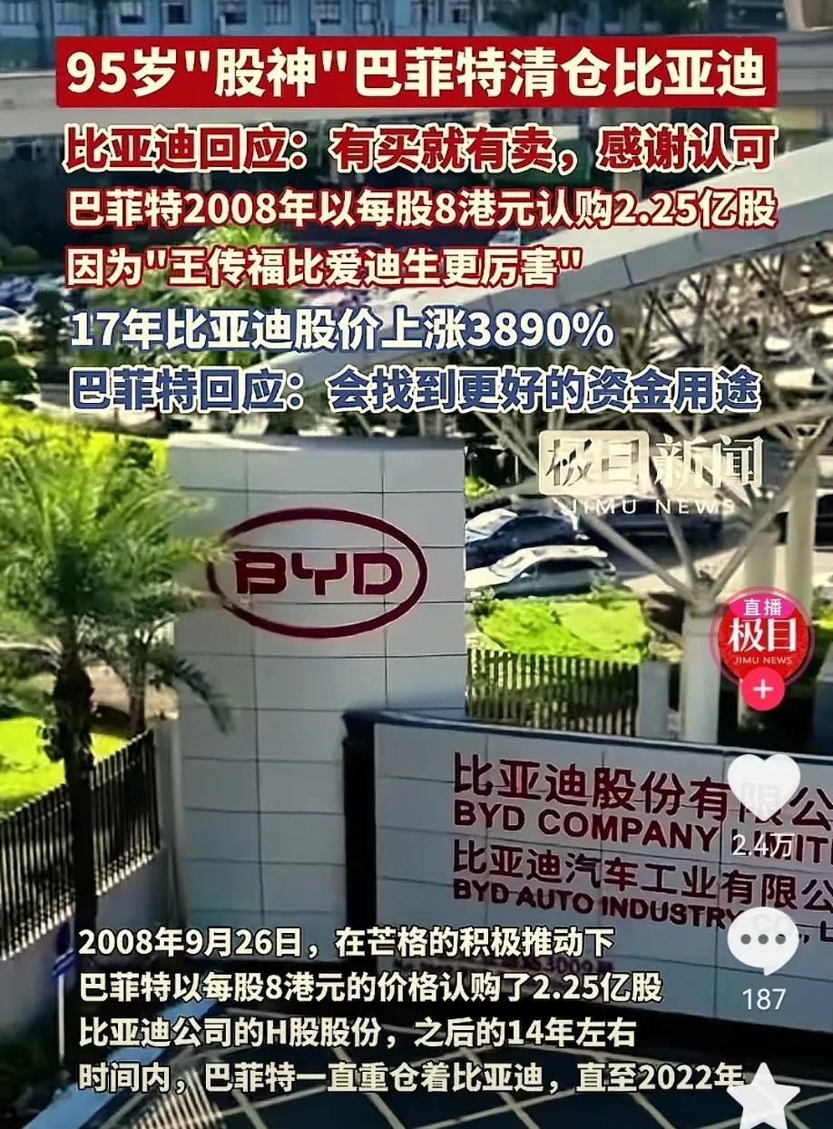95岁“股神”巴菲特清仓比亚迪股票,难道比亚迪出现了什么特殊情况吗? 巴菲特清仓