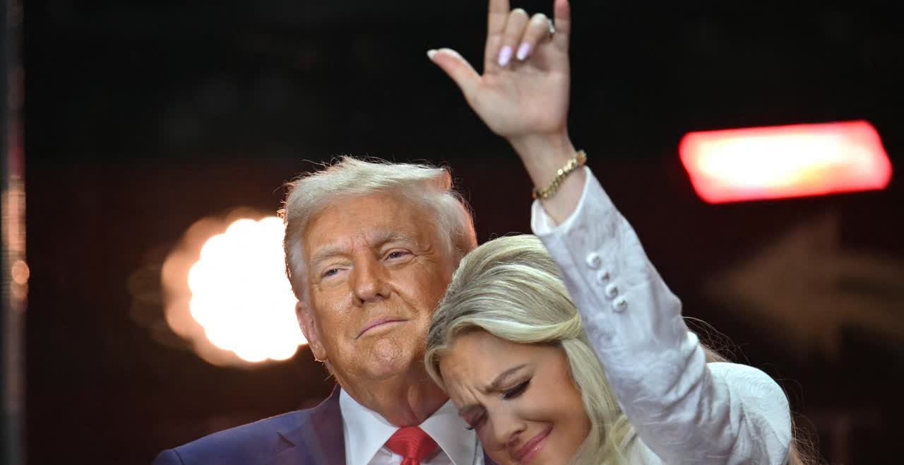 在纪念查理柯克的集会上,川普拥抱了他的美丽遗孀,他们的表情很怪,是不是? 查理