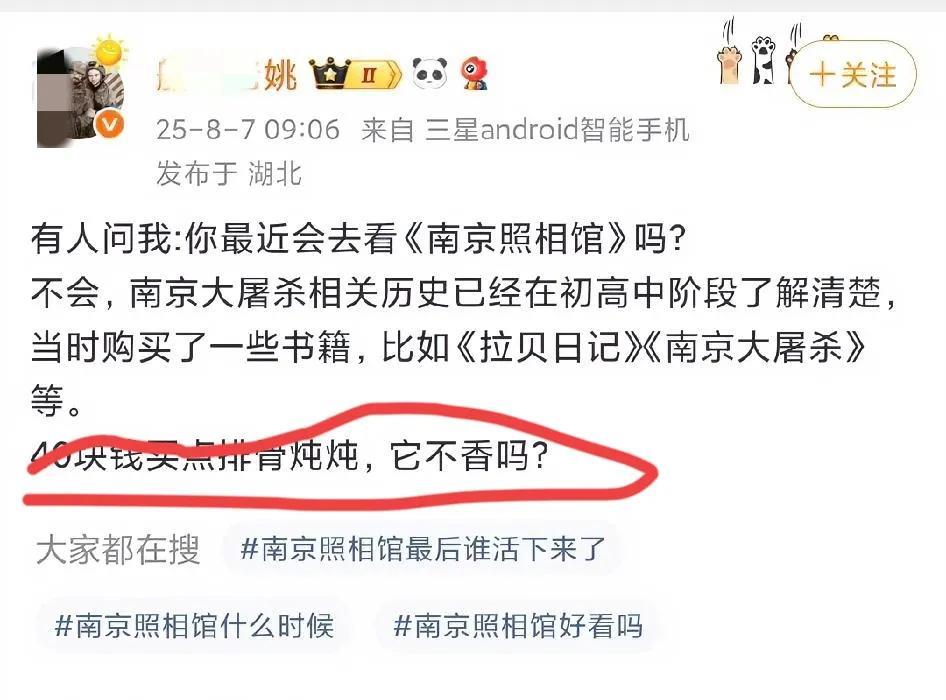 福建舰的弹弹弹,这个“老姚”该兑现承诺直播吃翔了! 福建舰三弹发布之后,有人找到了九年前的一张截图,当年“老姚”自己发了个誓,宣称如果“三号舰是电磁弹射,会在江南长兴门口直播吃翔”,现在全网该动一动催一催这个“老姚”,全网都等着他直播吃翔,而且必须要250克。要少吃一点也行,但是要为自己的错误言行道歉。 此人在微博有粉丝12万,格局却非常一般。上个月发文说不想去看《南京照相馆》,还阴阳怪气地说“还不如花四十块钱买排骨炖炖”,不看是自由,但是阴阳怪气的言论令人作呕。