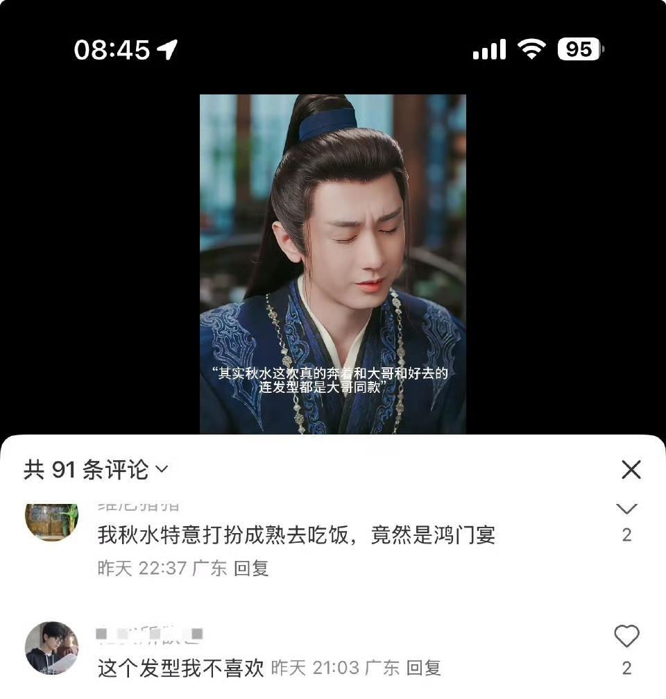 其实我觉得成毅这个发型更好看诶,现在那种铁刘海真的看腻了,这种大光明虽然有点显脸大,但是更有新鲜感,而且质感更好,万年不变的那个刘海可以修饰脸型,除此之外没有什么优点了,成毅真的可以自信一点,古装造型这么多,多尝试一下挺好的。