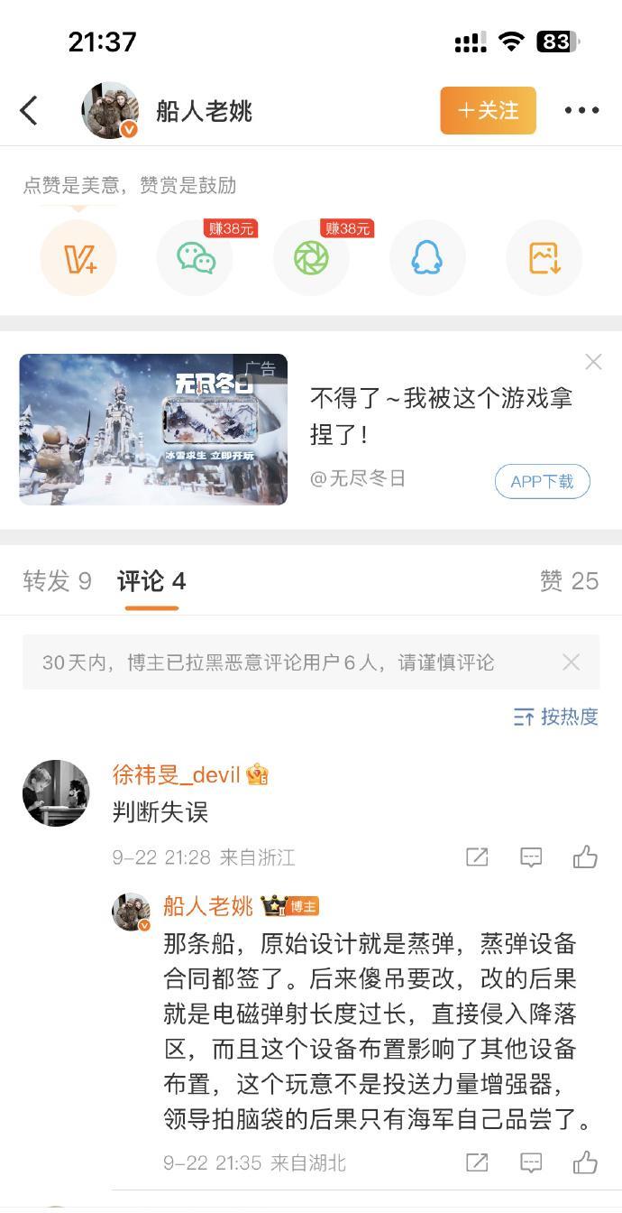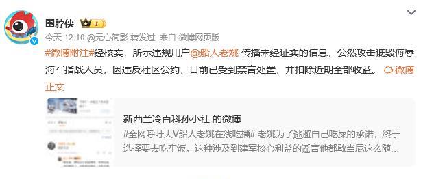 福建舰电磁弹射成功,全网都在等在等“船人老姚”能遵守承诺表演吞翔,结果他不但没有信守承诺,还表演作死。 他在气急败坏之下,竟然传播没有被证实的信息,公然攻击诋毁海军作战人员。 目前他的账号已经被禁言。 这些总是对自己祖国阴阳怪气的人,从来就不可能遵守承诺,他们连有没有良知都是一个问号,哪来的信用?