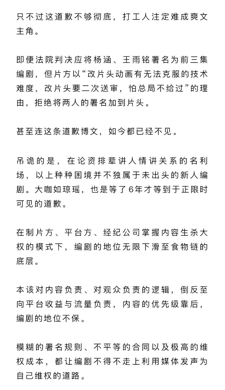 第一,录音的内容是不是真实的?如果是合成的,那就法律解决。如果是真实的,当事人是不是该出来道歉?至于录音,你敢说,还怪别人录音了。 第二,程与剧组有没有合同?如果合同写了不署名,并已经支付费用,那就别啰嗦了。 第三,程是否违法,如果违法就追究法律责任。