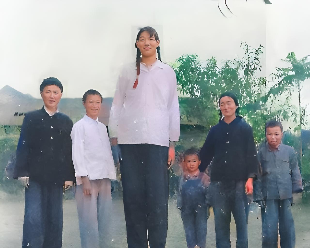 这位中国第一女巨人名叫曾金莲。她出生时有八斤多重。这与许多刚出生的孩子相比并不出
