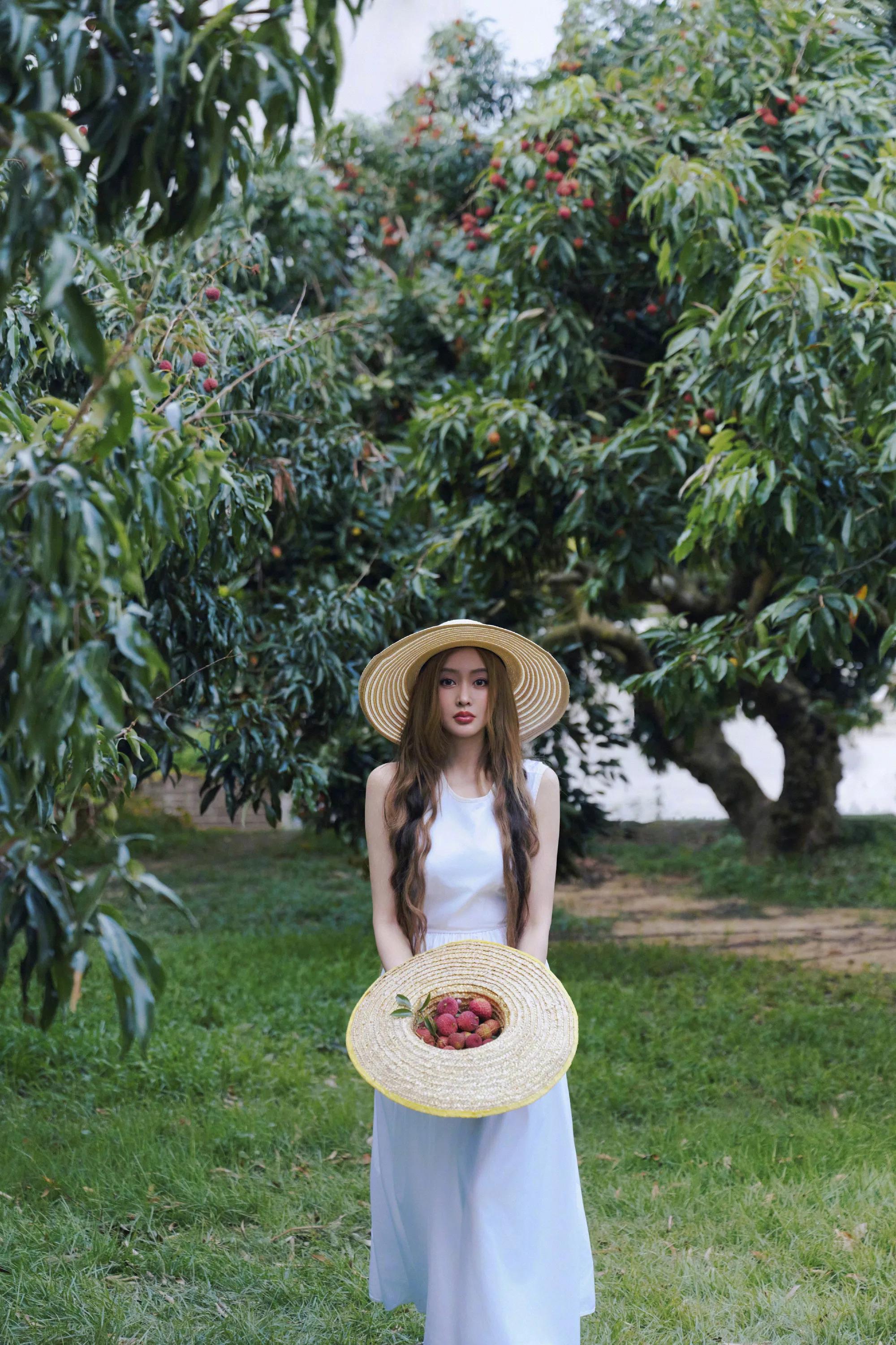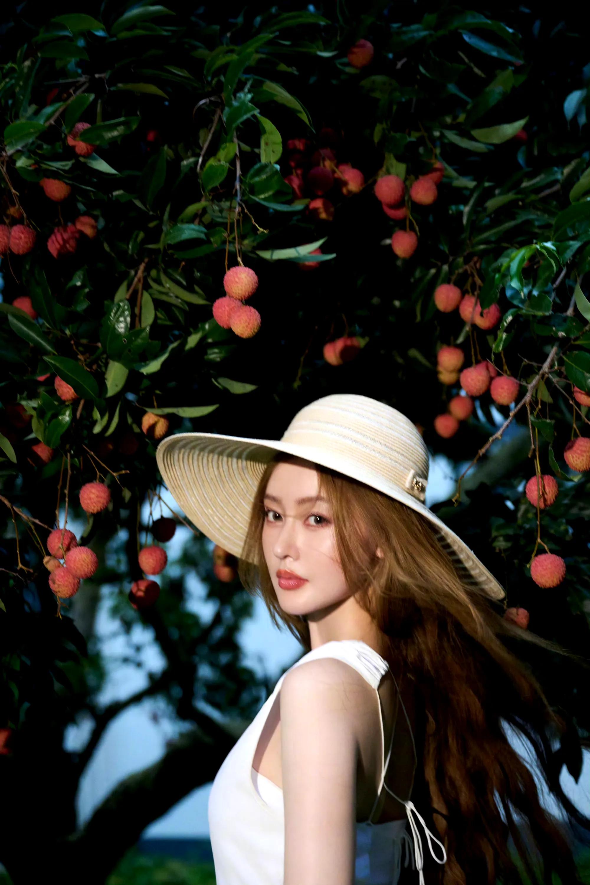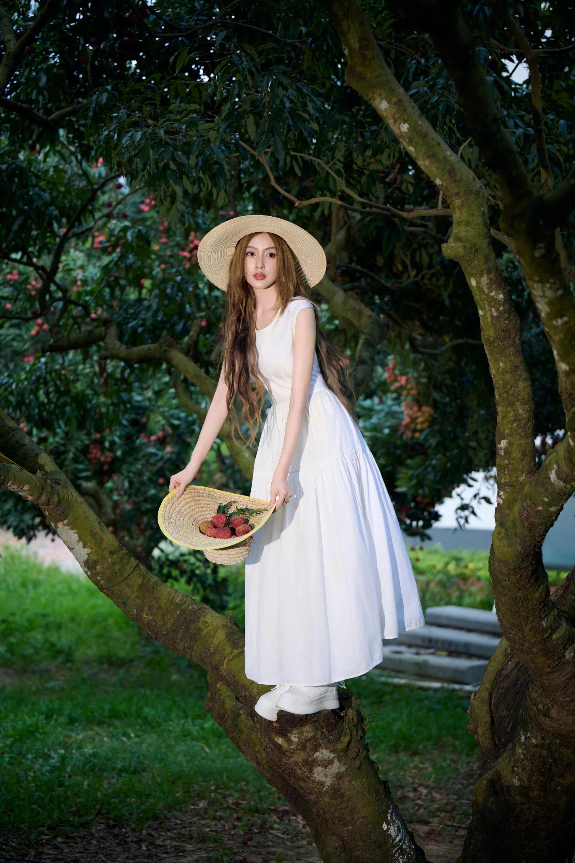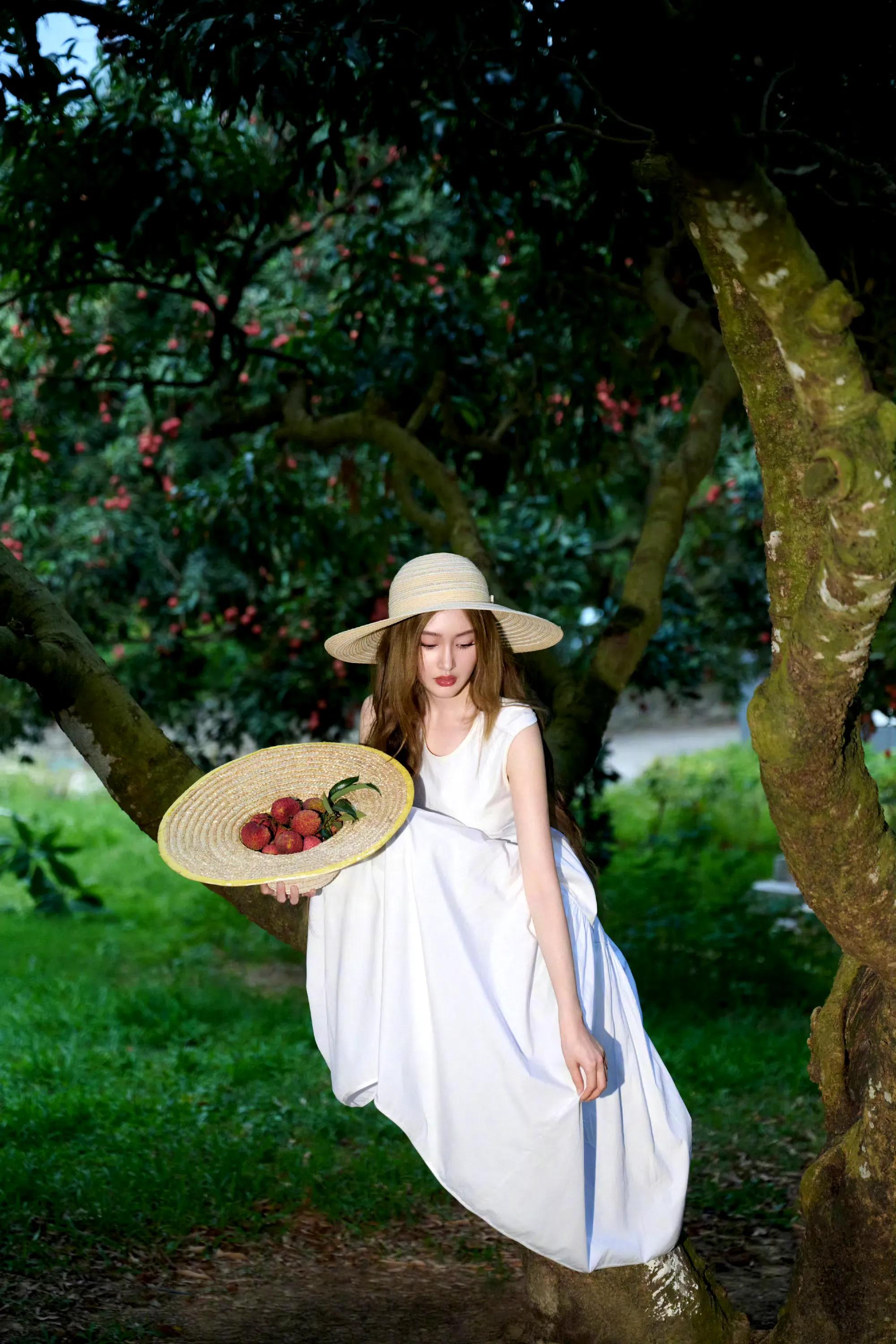 张天爱纯白连衣裙,人比荔枝甜