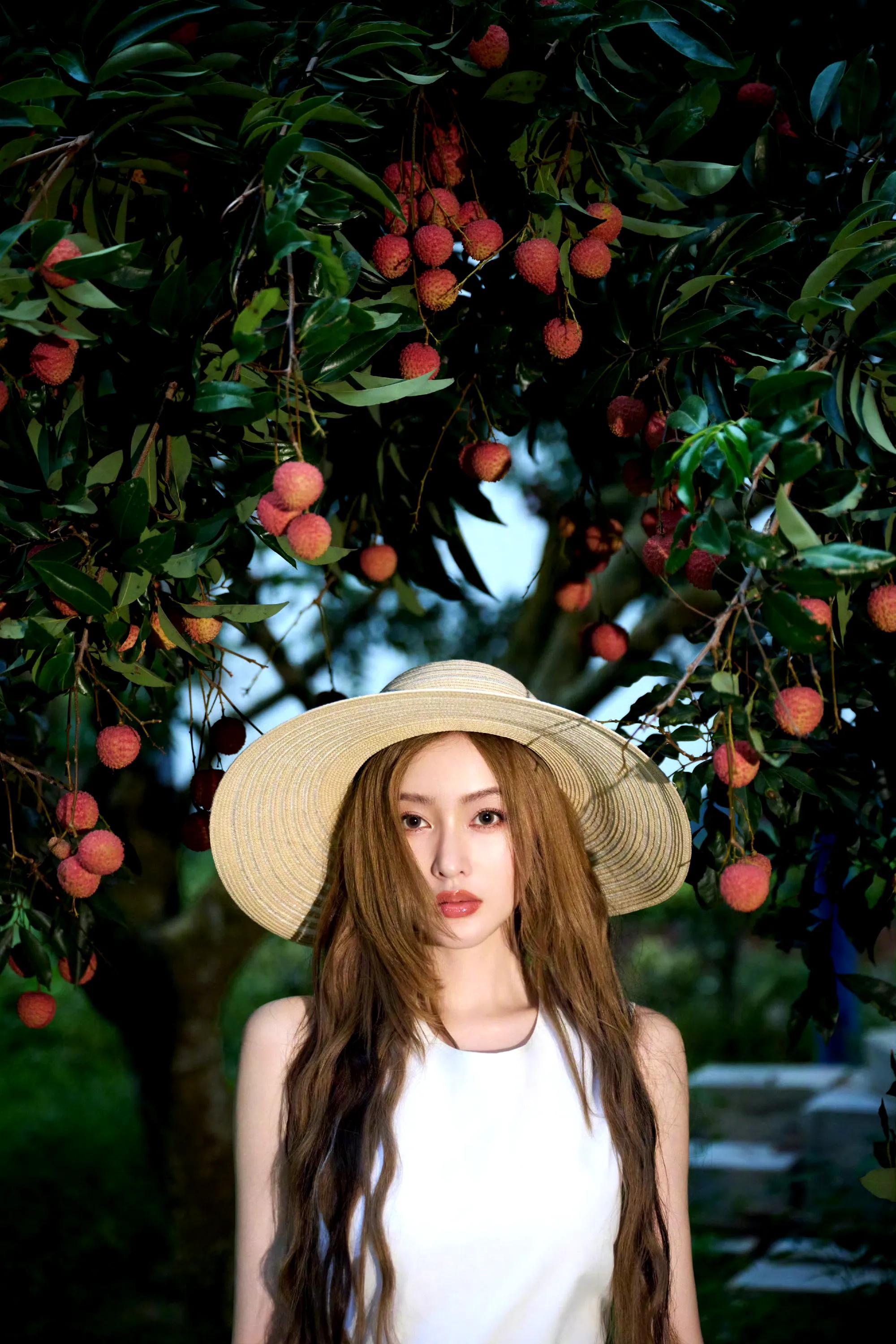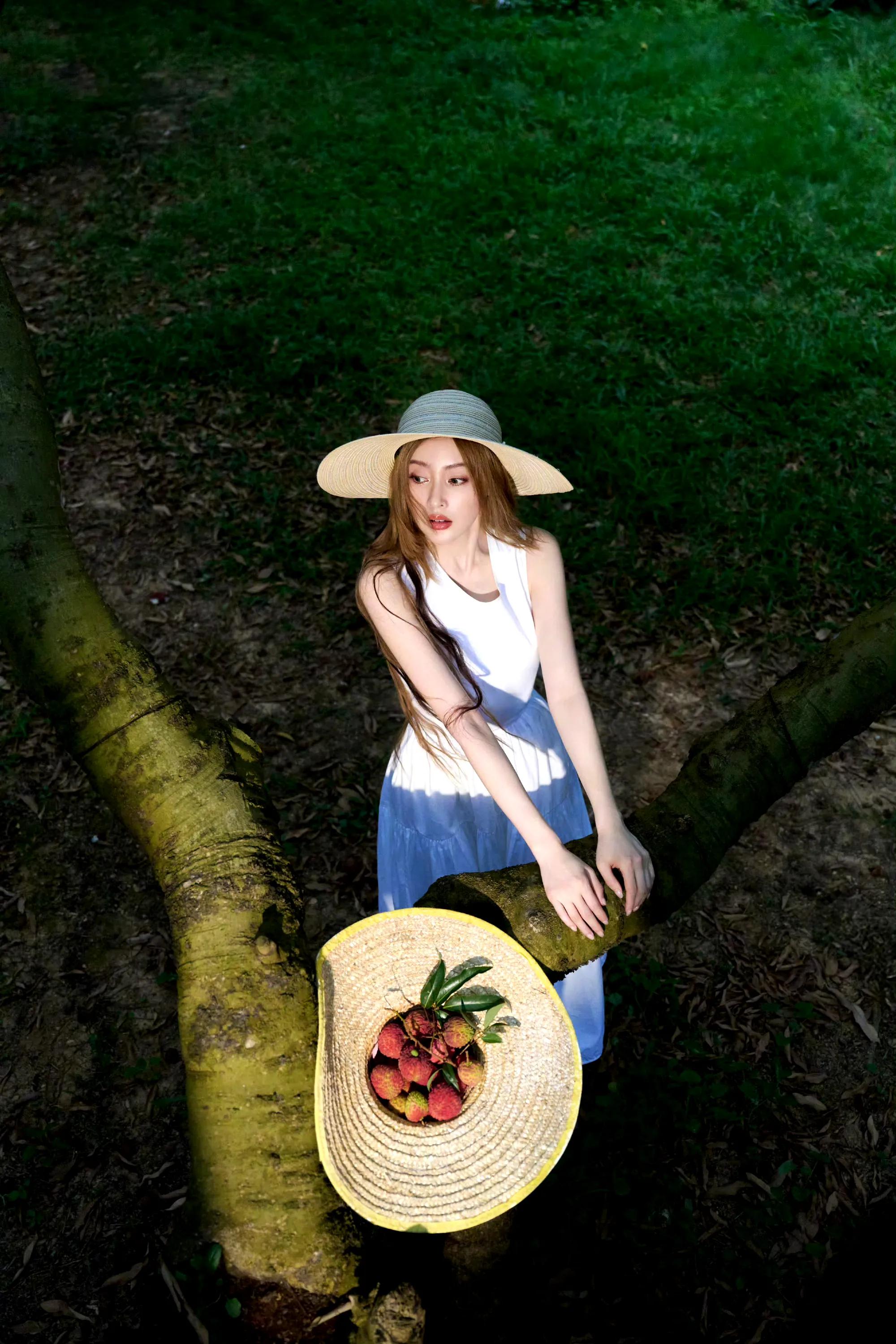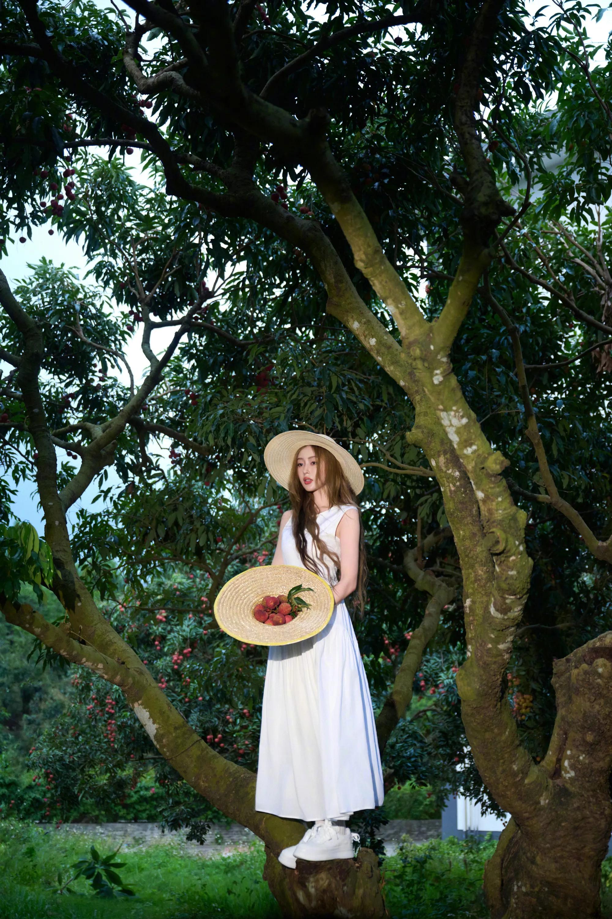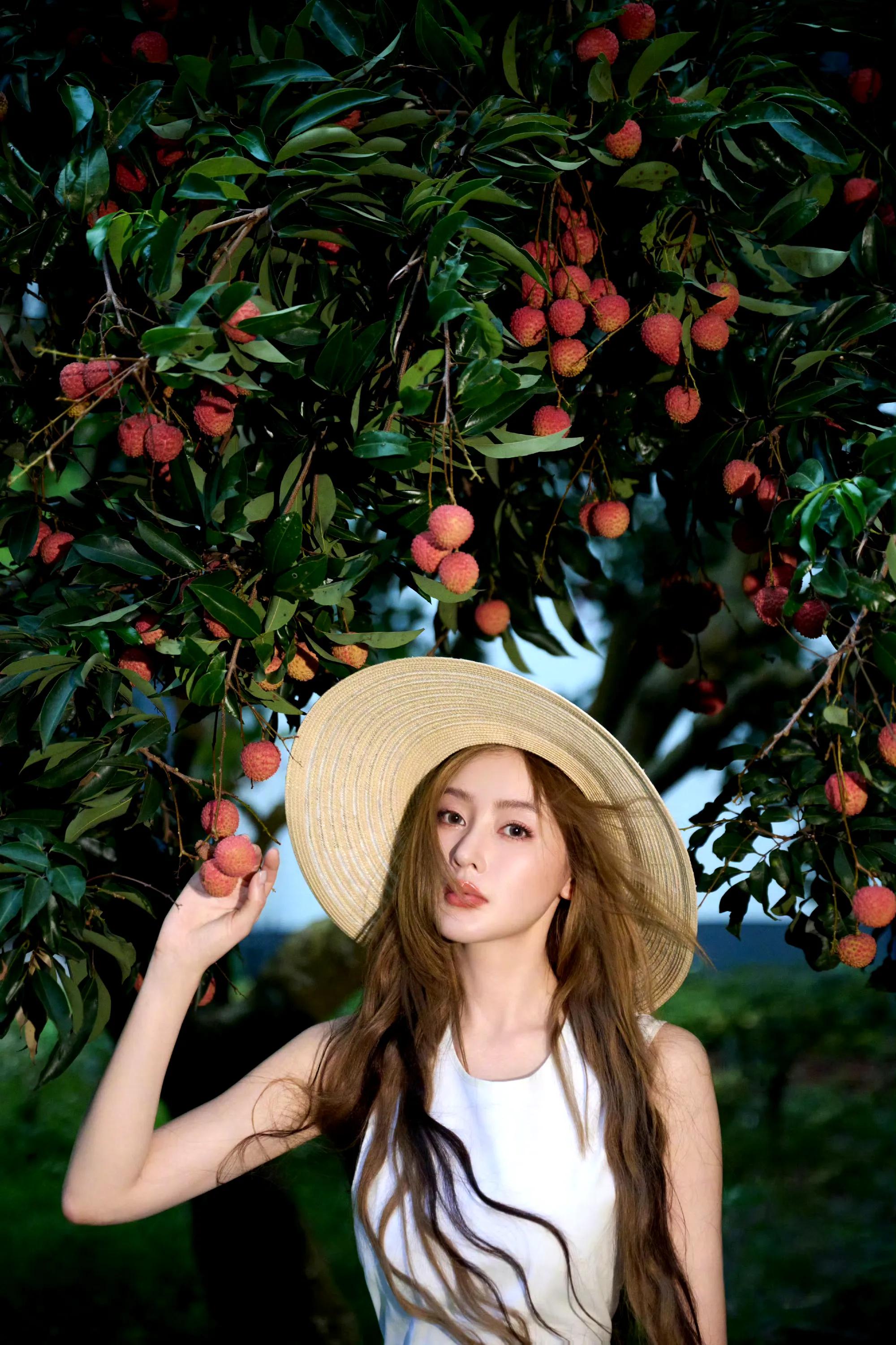 张天爱纯白连衣裙,人比荔枝甜