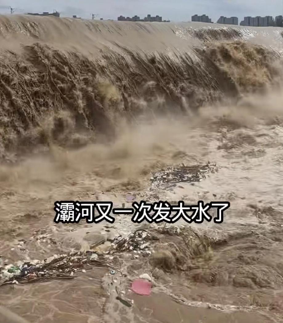 这不是壶口瀑布 第一眼看到的时候,我以为是,其实这是今日的灞河,西安的灞河,来自一个本土网友的视频。 灞河果然霸气,黄色的河水不停的翻滚,倾泻而下,壶口瀑布应该还没有这么大的水,这应该与近几日西安一直持续降雨有关系,降水量一大,水位立刻上升。 昨天我路过渭河河提路,看到这几天的渭河也一样,小河变成了大江,水流湍急。裹着黄色的泥沙,波浪汹涌。 特别提醒爱钓鱼的朋友,近来西安地区雨水多,远离河道,安全第一。